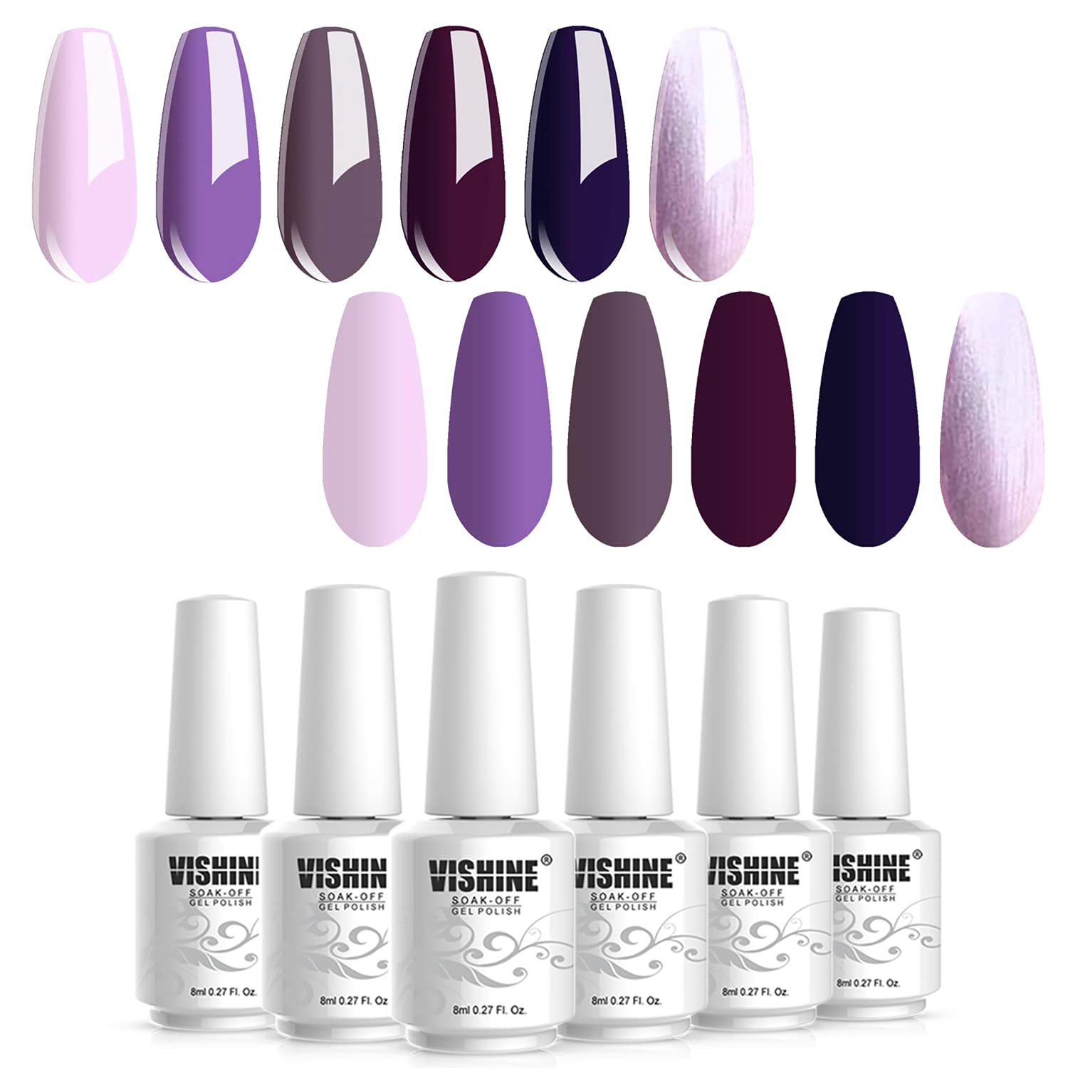 Vishine Gel Nail Polish Kit - 6 Colors Purple Series - Violet Lilac Grape Nail Gel Colors Nail Art DIY Home Gel Manicure Set