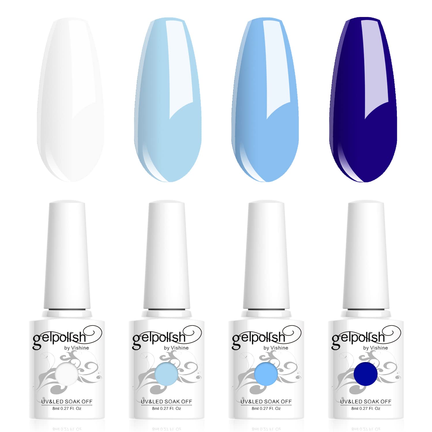 Vishine Gel Nail Polish Set - 4 Colors Sky Blue Collection Spring Summer White Baby Blue Sapphire Blue Nail Gel Nail Art Long-lasting Salon DIY Manicure 8ml C022 Set C022