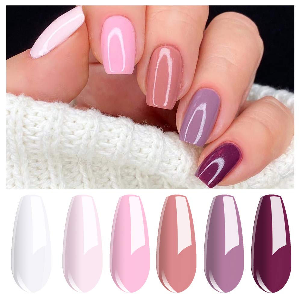 Vishine Gel Nail Polish Set - White Pink Nude Rose Trend Nail Gel 6 Colors - Soak Off Gel Polish Nail Art Home Gel Manicure Kit