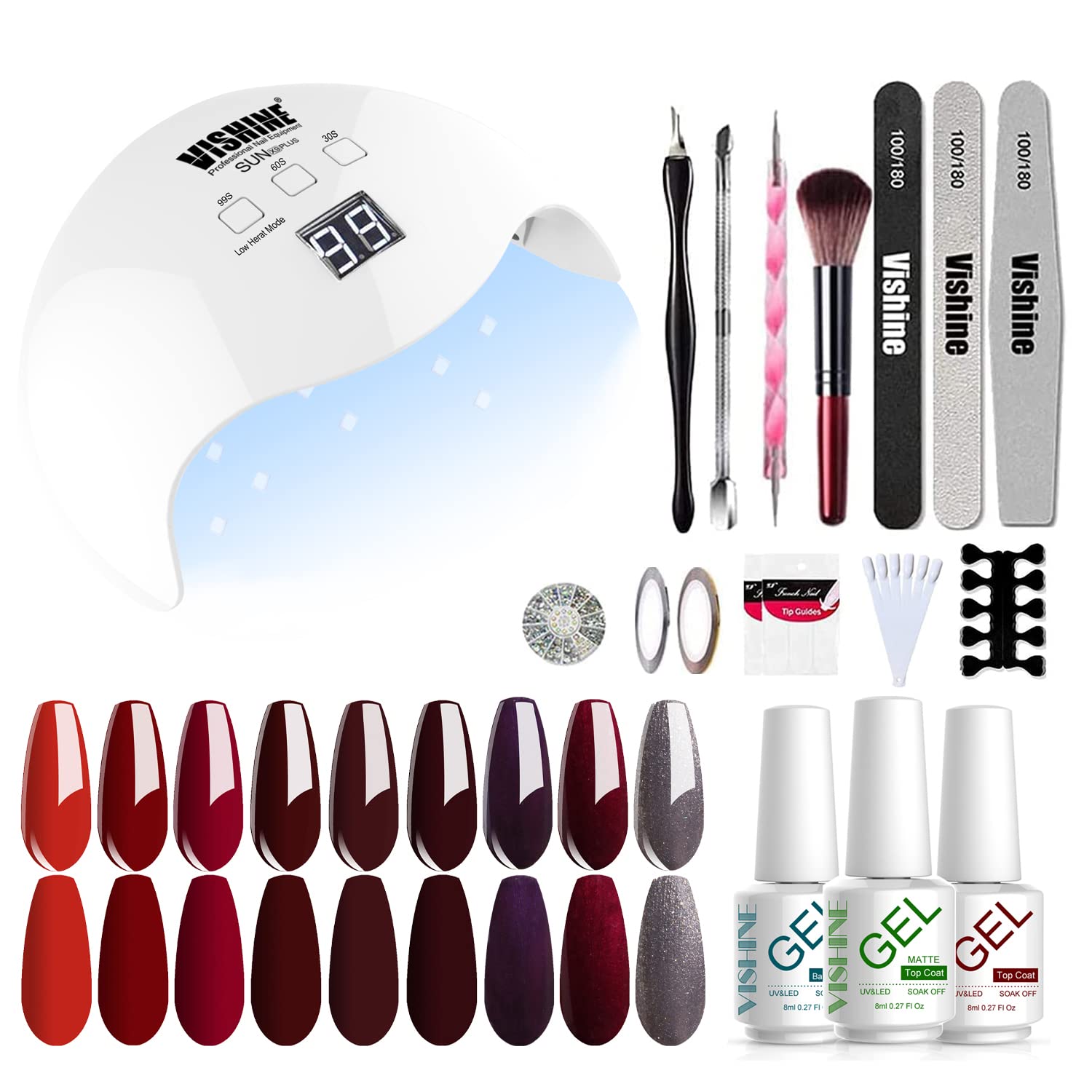 Color: Vishine 48 W LED lamp, gel nail polish, starter set. *Scope of delivery* 6 x gel nail polish. 1 x 48 W nail lamp. 1 x top coat. 1 x lower varnish. 1 x nail file. 1 x nail buffer (washable and disinfectable). 1 x nail brush. 1 x nail skin fork. 1 x puncture. 1 x nail shaver. 2 x nail separators. 1 x matt top coat. 1 x revitalizing nail. French stickers x 2 arches (different designs) 2 x strip strap (color gold and silver). Specifications: Bottle: 8 ml, package: 19 x 17 x 34 x 13 cm. use Step 1: Clean the nails and trim nail surface as with a normal manicure. Step 2: Shake the paint completely so that the color of the nail polish is balanced.(Important) Step 3: First apply the lower varnish and then harden it with the LED or UV nail lamp.(Necessary) Step 4: Apply the colored gel nail polish and harden it with the nail dryer.Wear the 2/3 if necessary.Layer on.Courage with the nail dryer after each layer. Step 5: Brush with the lid, then harden with the nail dryer. Step 6: Remove the sticky surface with cotton soaked with the cleaner. Step 7: Enjoy your 14-day manicure! ** FAQ ** 1. Simply pull off? (1) The greasy nail itself can easily remove the gel nail polish. (*Tips*: Use nail strengthers to improve) (2) Without using a nail file to dehydrate your nail and make the nail surface dry and rough. (3) Couration for too long under the lamp that influence the durability of the nail. (4) Not enough nail surface cleaner to wipe off the sticky layer, otherwise cracks will arise. (5) Lower varnish of different brands that are used with our brand angel that can affect compatibility.certification: MSDS, FDA, SGS, CE.DIY fun with salon quality nail lamp set: great kit for a gel beginner, basic nail manicure tools help you to complete the process of your nail art, you save money from the nail studio.Beautiful gel color collection: classic colors, suitable for every occasion, long shelf life up to 14 days, odorless, no damage to the skin, reflective surface.48 W UV LED lamp, high efficiency and good thermal distribution-the EMENTY nail lamp offers a drying speed that corresponds to the double speed of the normal UV LED lamp.The heat hole hole and the fan design can continuously cool the machine for 30 seconds, which protects the machine from overheating.VISHINE NAGEL-SARTER SET: Sunone 48 W LED lamp + 4 x gel nail polish in different colors + 1 x matt overlack + top coat + nail art tools (total 31-part set). Farbe: Vishine 48 W LED-Lampe, Gel-Nagellack, Starter-Set. *Lieferumfang* 6 x Gel-Nagellack. 1 x 48-W-Nagellampe. 1 x Decklack. 1 x Unterlack. 1 x Nagelfeile. 1 x Nagelpuffer (waschbar und desinfizierbar). 1 x Nagelbürste. 1 x Nagelhautgabel. 1 x Punktierstift. 1 x Nagelhautschieber. 2 x Nageltrenner. 1 x matter Überlack. 1 x revitalisierender Nagel. Französische Aufkleber x 2 Bögen (verschiedene Designs) 2 x Streifenband (Farbe Gold und Silber). Spezifikationen: Flasche: 8 ml, Paket: 19 x 17 x 34 x 13 cm. Verwendung Schritt 1: Nägel reinigen und Nageloberfläche wie bei einer normalen Maniküre trimmen. Schritt 2: Schütteln Sie den Lack vollständig auf, damit die Farbe des Nagellacks ausgeglichen wird. (Wichtig) Schritt 3: Tragen Sie zuerst den Unterlack auf und härten Sie ihn dann mit der LED- oder UV-Nagellampe aus. (Notwendig) Schritt 4: Tragen Sie den farbigen Gel-Nagellack auf und härten Sie ihn mit dem Nageltrockner aus. Tragen Sie bei Bedarf die 2/3. Schicht auf. Nach jeder Schicht mit dem Nageltrockner aushärten. Schritt 5: Mit dem Decklack bestreichen, dann mit dem Nageltrockner aushärten. Schritt 6: Entfernen Sie die klebrige Oberfläche mit mit dem Reiniger getränkter Baumwolle. Schritt 7: Genießen Sie Ihre 14-Tage-Maniküre! ** FAQ** 1. Einfach abziehen? (1) Der fettige Nagel selbst lässt den Gel-Nagellack leicht abziehen. (*Tipps*: Verwenden Sie Nagelstärker, um sich zu verbessern) (2) Ohne eine Nagelfeile zu verwenden, um Ihren Nagel zu dehydrieren und die Nageloberfläche trocken und rau zu machen. (3) Aushärtung zu lange Zeit unter der Lampe, die die Haltbarkeit des Nagels beeinflussen. (4) Nicht genug Nageloberflächenreiniger, um die klebrige Schicht abzuwischen, da sonst Risse entstehen. (5) Unterlack verschiedener Marken, die mit unserem Markengel verwendet werden, die die Kompatibilität beeinflussen können.Zertifizierung: MSDS,FDA,SGS,CE. DIY Spaß mit Salon Qualität Nagellampe Set: Tolles Kit für einen Gel-Anfänger, grundlegende Nagelmaniküre-Werkzeuge helfen Ihnen, den Prozess Ihrer Nagelkunst abzuschließen, sparen Sie Geld vom Nagelstudio. Schöne Gel-Farben-Kollektion: Klassische Farben, geeignet für jeden Anlass, lange Haltbarkeit bis 14 Tage, geruchlos, kein Schaden für die Haut, spiegelnde Oberfläche. 48 W UV-LED-Lampe, hohe Effizienz und gute thermische Verteilung – die Ementy Nagellampe bietet eine Trocknungsgeschwindigkeit, die der doppelten Geschwindigkeit der normalen UV-LED-Lampe entspricht. Das Kühlkörperloch und das Lüfterdesign können die Maschine 30 Sekunden lang kontinuierlich kühlen, wodurch die Maschine vor Überhitzung geschützt wird. Vishine Nagel-Starter-Set: Sunone 48 W LED-Lampe + 4 x Gel-Nagellack in verschiedenen Farben + 1 x matter Überlack + Decklack + Nagelkunst-Werkzeuge (insgesamt 31-teiliges Set).Vishine Gel-Nagellack-Starter-Set, mit 48 W LED-Lampe, Basis- und Überlack, 4 hübsche Rottöne, Nagelgel-Kit für Nagelkunst