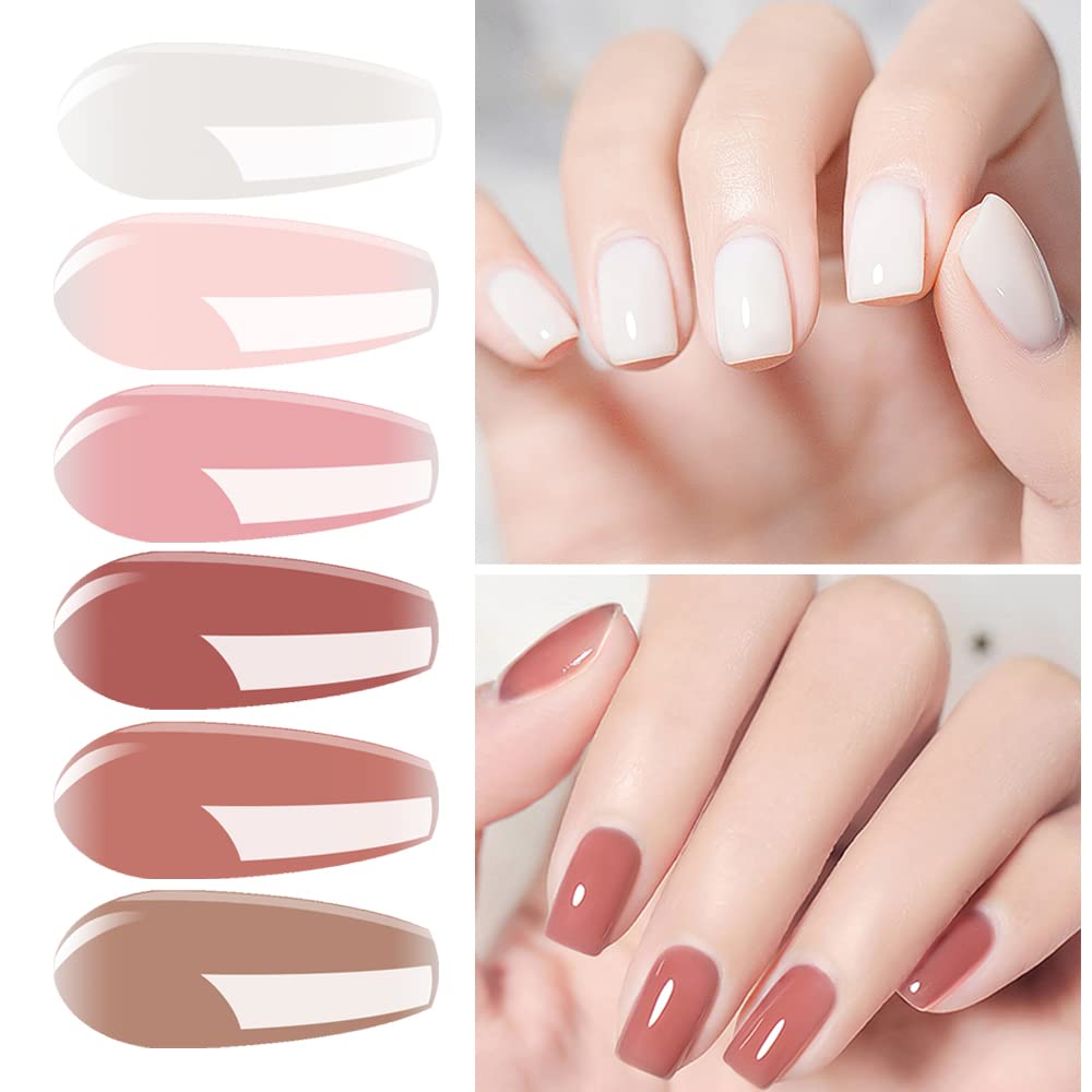 Vishine Jelly Milky White Pink Nude Transparent Gel Nail Polish Set of 6 Glass Sheer Colors Gel Polish Kit UV LED Soak Off Nail Art Varnish 8ml C063