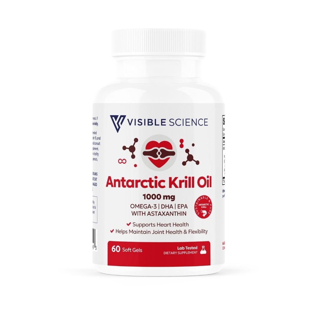 Visible Science Antarctic Krill Oil 1000mg Omega-3 EPA & DHA with Astaxanthin Heart Joint & Brain Health Support Helps Maintain Flexibility Sustainably Sourced 60 Softgels