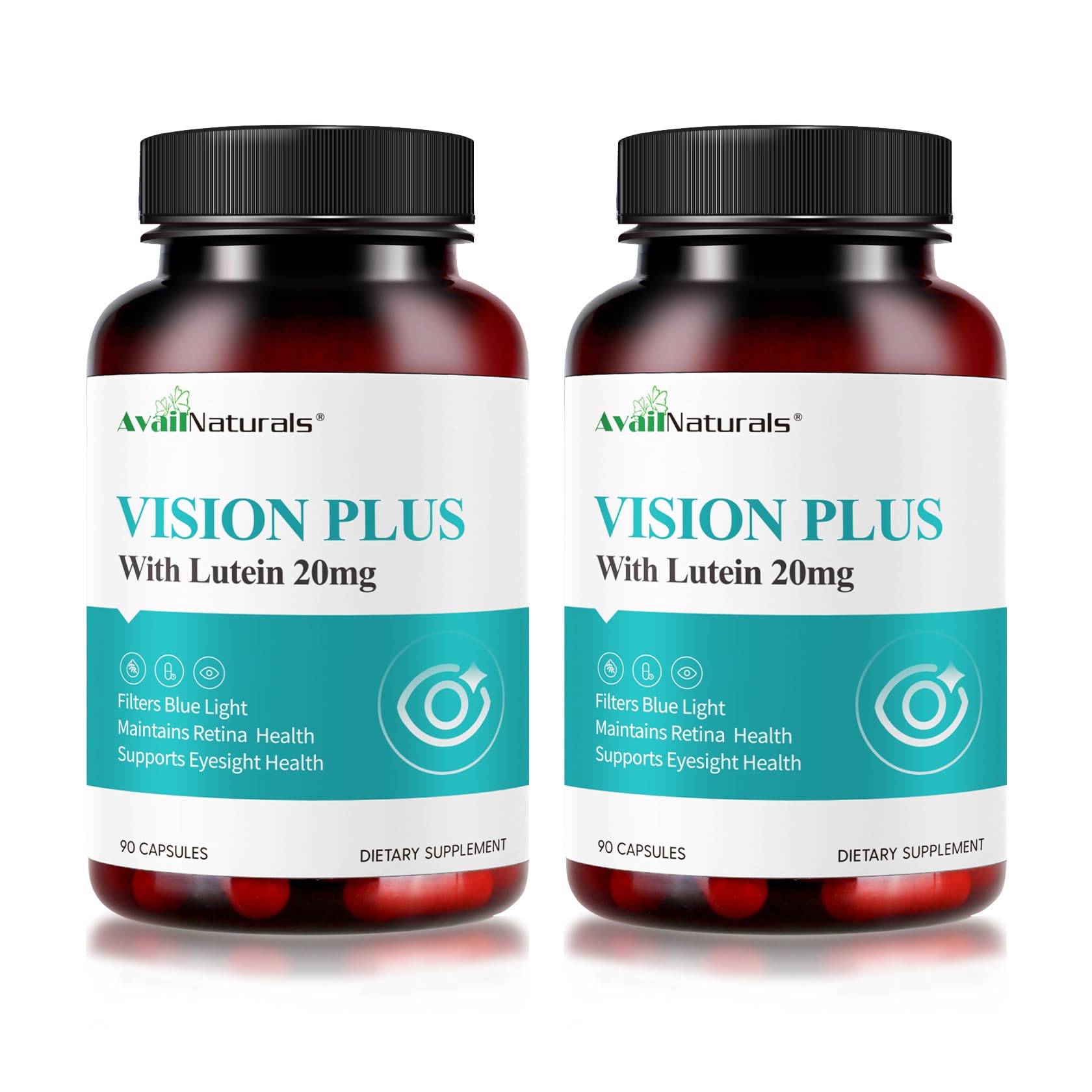 Vision Plus Eye Vitamins with Lutein 20mg Bilberry & Blueberry Extract - Key Antioxidants for Eye Health Support - 90 Capsules Non-GMO 90 Count (Pack of 2)
