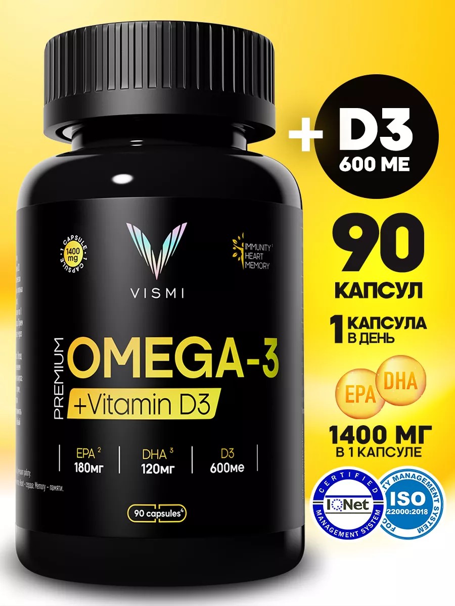 Vismi Омега-3 + Витамин D3, 90 капсул