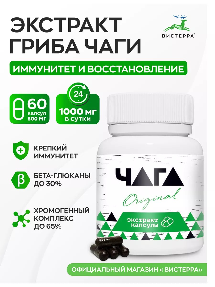 Чага, экстракт в капсулах, 60 шт