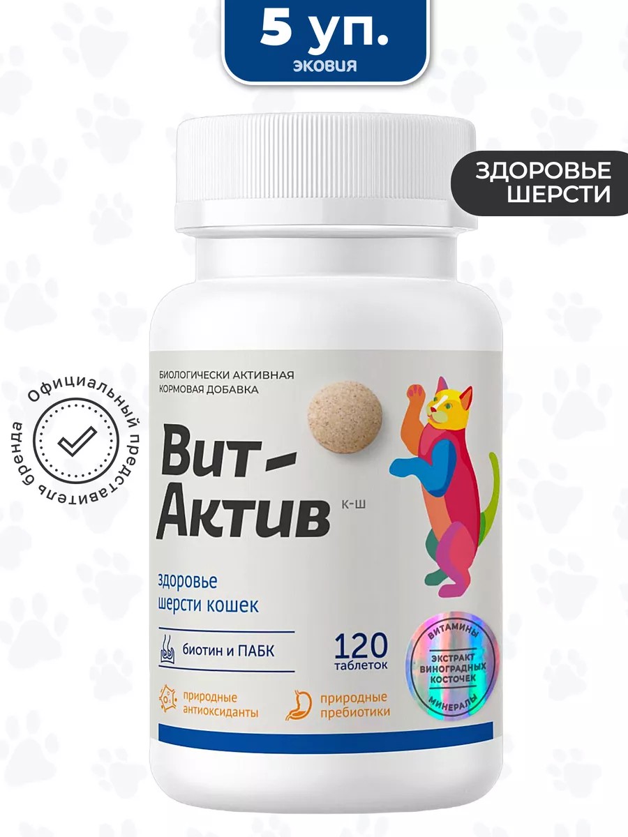 | Комплектация | Витаминно-минеральный комплекс Вит-Актив Здоровье шерсти кошек (120 таблеток); Количество упаковок указано на главном фото; В каждой упаковке 120 таблеток |