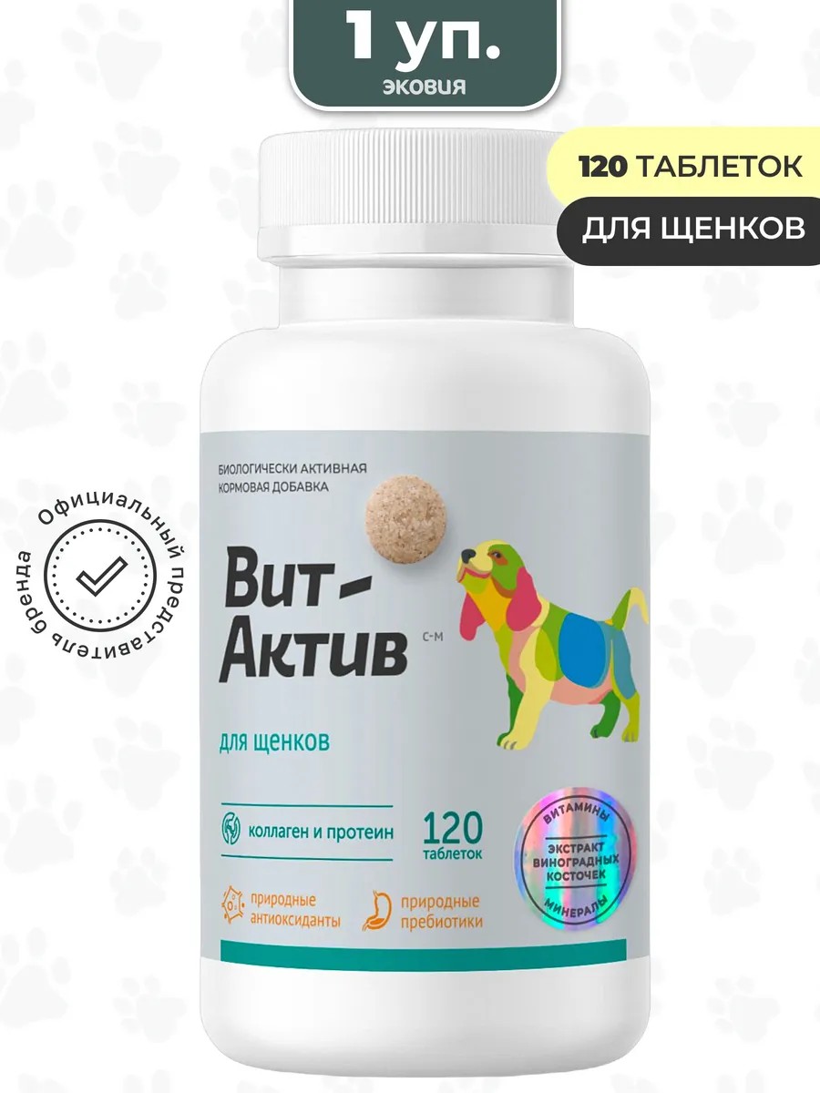 | Package contents | Vitamin and mineral complex Vit-Active for puppies (120 tablets); The number of packages is indicated in the main photo; Each package contains 120 tablets |