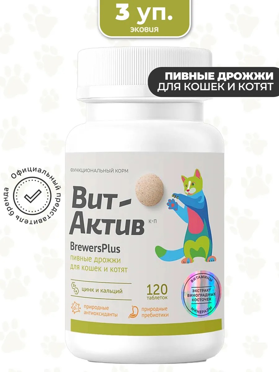 | Package contents | Vitamin and mineral complex Vit-Active BrewersPlus Brewer's yeast for cats and kittens (120 tablets); The number of packages is indicated in the main photo; Each package contains 120 tablets |