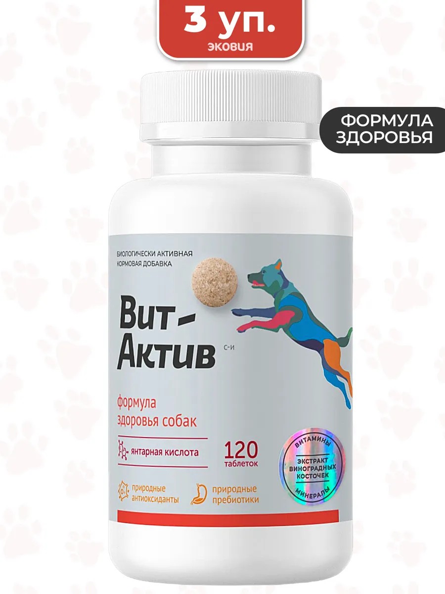 | Package contents | Vitamin and mineral complex Vit-Active Formula for dog health (120 tablets); The number of packages is indicated in the main photo; Each package contains 120 tablets |