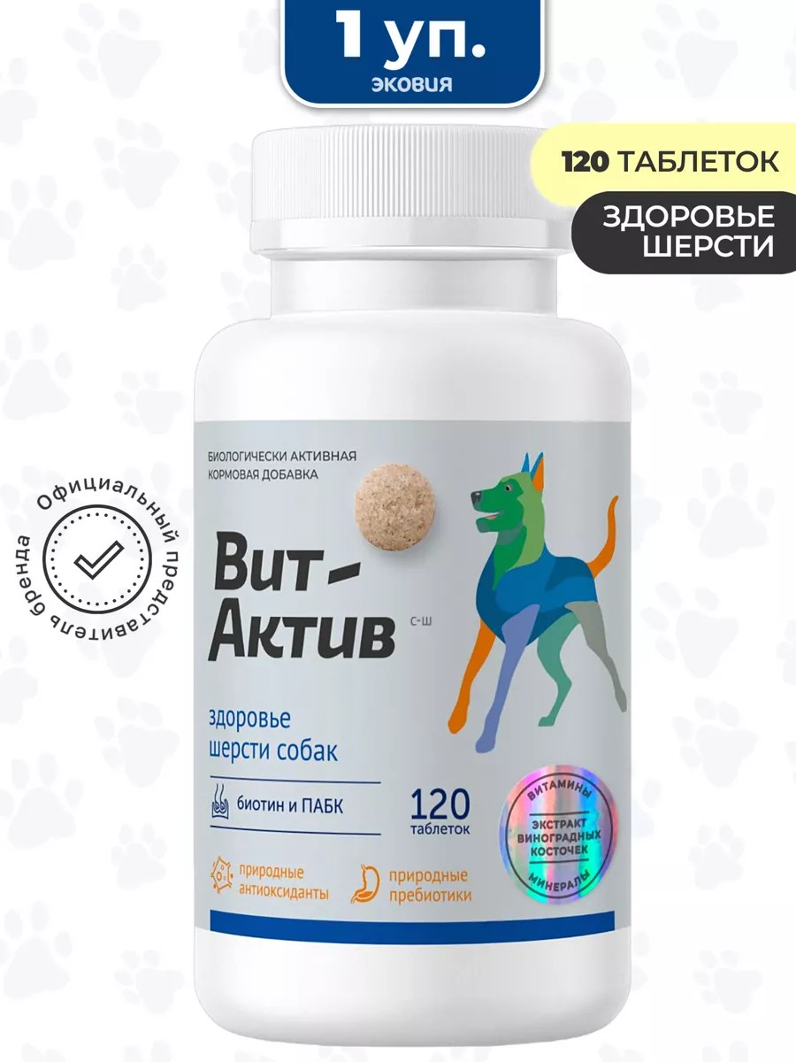 | Комплектация | Витаминно-минеральный комплекс Вит-Актив Здоровье шерсти собак (120 таблеток); Количество упаковок указано на главном фото; В каждой упаковке 120 таблеток |