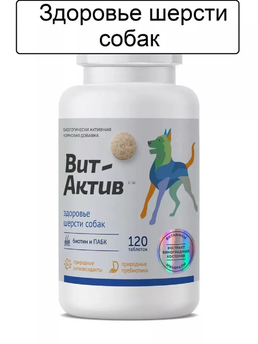 Вит-Актив — витаминно-минеральный комплекс для улучшения состояния кожно-шерстного покрова, обеспечения физиологических потребностей собак в витаминах, аминокислотах и минеральных веществах, обогащения рациона природными антиоксидантами и пребиотиками.