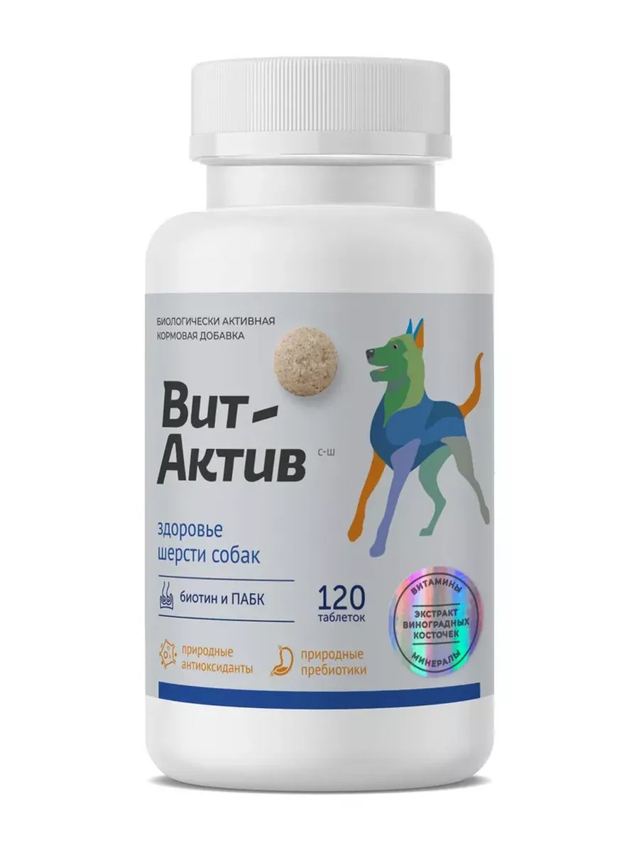 ВитАктив витаминноминеральный комплекс для улучшения состояния кожношерстного покрова, обеспечения физиологических потребностей собак в витаминах, аминокислотах и минеральных веществах, обогащения рациона природными антиоксидантами и пребиотиками