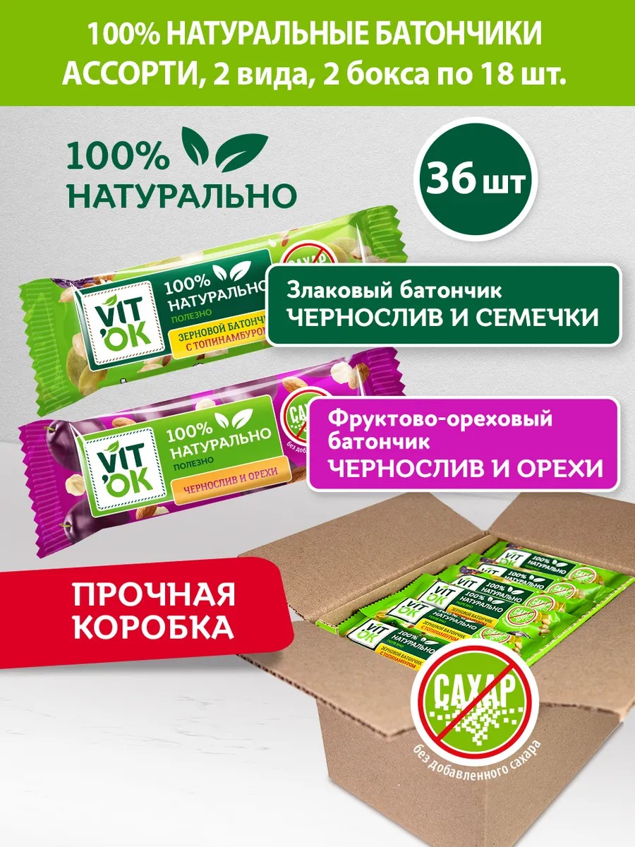 Батончики без сахара ассорти злаковые и фруктовые, 36шт 30г