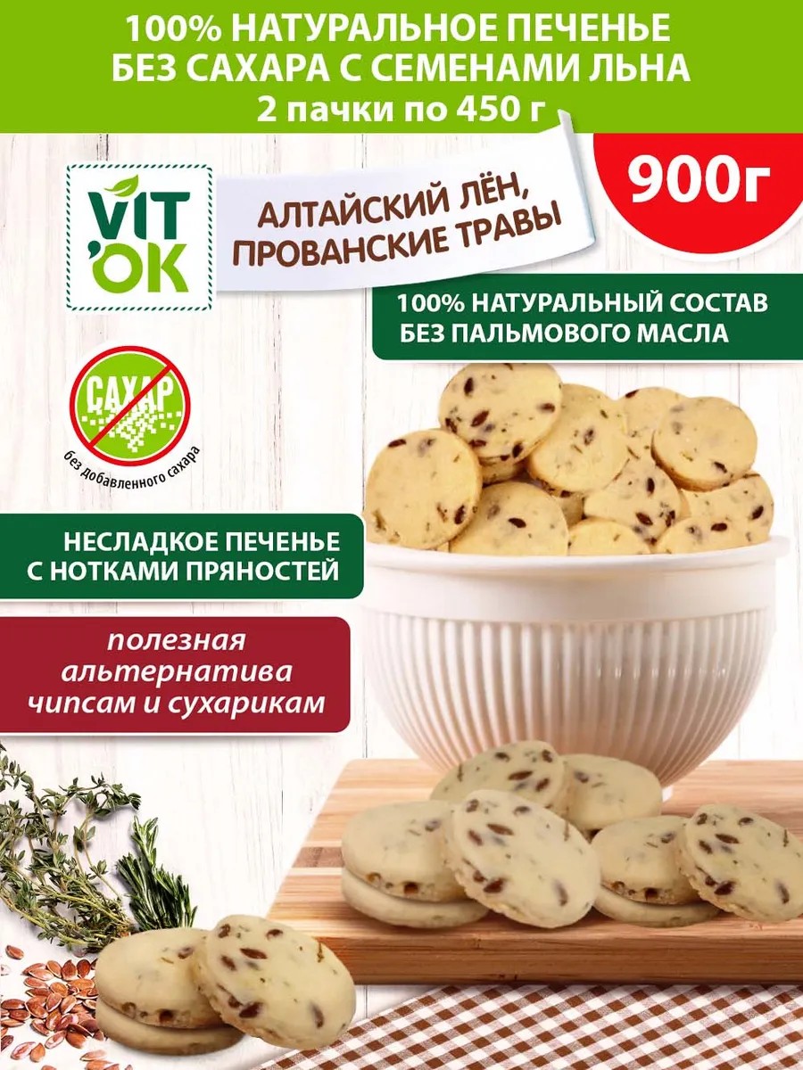 100% натуральное злаковое печенье Vitok Алтайский лен и прованские травы. В коробке 2 упаковки по 450 г. Печенье понравится тем, кто предпочитает галеты или крекеры с семечками кунжутом и льном. Аромат хрустящего печенья перенесет вас прямо в сердце прекрасной прованской долины, наполненной ароматами солнечных полей, а семена льна обеспечат правильное функционирование организма, благодаря содержанию Омега-3 и аминокислотам. Печенье без сахара VITok в коробке это снек для правильного здорового спортивного пп питания. Без ГМО, консервантов и пальмового масла. В рецептуре не содержатся животные жиры. Наши низкокалорийные вкусняшки это настоящие живые печеньки для тех, кто следит за питанием и придерживается принципов ЗОЖ, следит за снижением веса, для фитнеса. Наше сладкое лакомство отлично подходит для веганов. Они незаменимы для тех, кто любит сладости, но контролирует свой вес. Хорошая альтернатива протеиновому печенью, овсяному, имбирному и злаковому печенью с семечками. Поможет для похудения. Повысит ваш иммунитет. Наше пп печенье это лакомства для здоровья и настоящий суперфуд. Поможет вам утолить легкий голод на тренировке или во время прогулки. Прослужит отличным десертом для чая и кофе. Поможет справиться с переутомлением и взбодриться в течение тяжелого рабочего дня. Вкусный и полезный перекус для приверженцев здорового образа жизни в компактной форме, удобно брать с собой в дорогу, на работу, на учебу, в спортзал. Диетическое печенье из натуральных ингредиентов это отличный вариант для детей школьного и дошкольного возраста в школу, детский сад, на занятия и на тренировку в спортивные секции. Его обязательно оценят как сладкий подарок. 100% натурально. Постный продукт - рекомендовано употребление в пост. Не для диабетического питания.