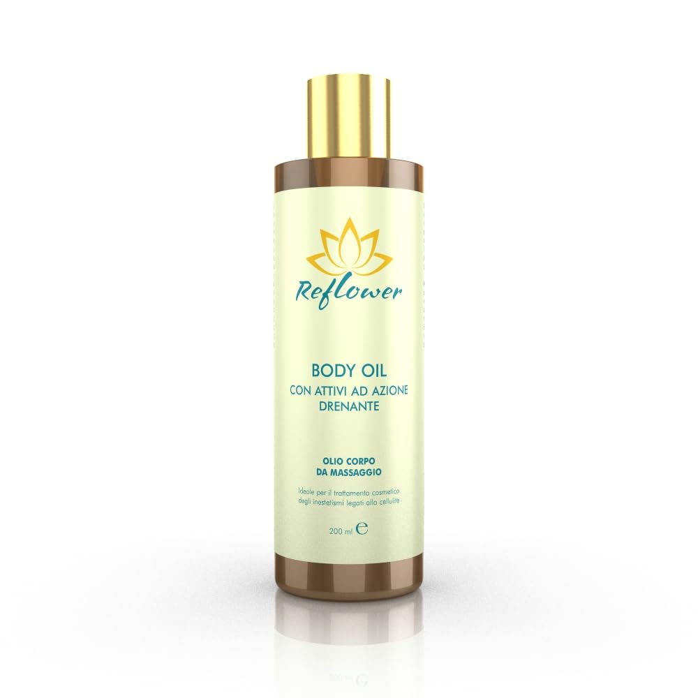 Draining Body Oil: ideal body oil for massages and self-massage, based on sweet almond oil that moisturizes and nourishes the skin. To enrich the formula, fermented olive oil, capsicum extract, and grapefruit essential oil work in synergy with the active oils to give the skin a smooth and firm appearance. INGREDIENTS Vitis vinifera (Grape) seed oil, Prunus amygdalus dulcis (Sweet almond) oil, Ethylhexyl palmitate, Ethylhexyl stearate, Caprylic capric triglyceride, Sesamum indicum (Sesame) oil, Glycine soja (Soybean) oil, Oryza sativa (Rice) bran oil, Helianthus annuus (Sunflower) seed oil, Almond Borage Linseed Olive Acids Glycerides, Pseudozyma epicola (Olive fruit oil ferment filtrate), Limonene, Lecithin, Citral, Melissa officinalis (Lemon balm) leaf oil, Tocopherol (vitamin E), Ascorbyl palmitate, Betula alba (Betula alba) leaf extract, Citrus grandis (Grapefruit) Peel oil, Charger papaya fruit extract, Capsicum annuum fruit extract, Hypericum perforatum extract, Lavandula angustifolia flower extract, Geraniol, Linalool, Citric acid, Citrus sinensis peel oil expressed, Citronellol SAFETY WARNING Avoid direct contact with eyes and mucous membranes. Keep out of reach of children. Store in a cool, dry place away from heat. Slight variations in color do not indicate a product alteration but are an indication of its natural composition. Dermatologically tested on normal skin. Cosmetic product for external use. See moreEnriched with fermented olive oil, capsicum extract, and grapefruit essential oil. Ideal for the cosmetic treatment of cellulite-related imperfections. Moisturizes and nourishes the skin. A body oil ideal for massages and self-massage, based on sweet almond oil.Body oil drainant 200 ml - ReflowerDESCRIPTION DU PRODUIT DESCRIPTION DU PRODUIT Body Oil Drainant : huile corporelle idéale pour massages et automassages à base d'huile d'amande douce qui hydrate et nourrit la peau. Pour enrichir la formule l'huile d'olive fermentée, l'extrait de capsique et l'huile essentielle de pamplemousse qui, en synergie avec les huiles actives, donnent à la peau un aspect lisse et compact INGRÉDIENTS Vitis vinifera seed oil, Prunus amygdalus dulcis oil, Ethylhexyl palmitate, Ethylhexyl stearate, Caprylic capric triglyceride, Sesamum indicum oil, Glycine soja oil, Oryza sativa bran oil, Helianthus annuus seed oil, A l m o n d B o ra g e L i n s e e d O l i v e Acids Glycerides, Pseudozyma epicola Olive fruit oil ferment filtrate, Limonene, Lecithin, Citral, Melissa officinalis leaf oil, Tocopherol, Ascorbyl palmitate, Betula alba leaf extract, Citrus grandis peel oil, Charger papaya fruit extract, Capsicum annuum fruit annuum fruit Extrait, Hypericu. M perforatum extract, Lavandula angustifolia flower extract, géraniol, Linalool, Citric acid, Citrus sinensis peel oil expressed, Citronellol AVERTISSEMENT DE SÉCURITÉ Évitez tout contact direct avec les yeux et les muqueuses. Tenir hors de portée des enfants. Conserver dans un endroit frais et sec à l'abri de la chaleur. Une légère variation de coloration ne représente pas une altération du produit mais est un indice de son naturel. Testé dermatologiquement sur peaux normales. Produit cosmétique pour usage extérieur Voir plusEnrichi en huile d'olive fermentée, extrait de capsique et huile essentielle de pamplemousse. Idéal pour le traitement cosmétique des imperfections liées à la cellulite. Hydrate et nourrit la peau. Huile corporelle idéale pour massages et automassages à base d'huile d'amande douce.