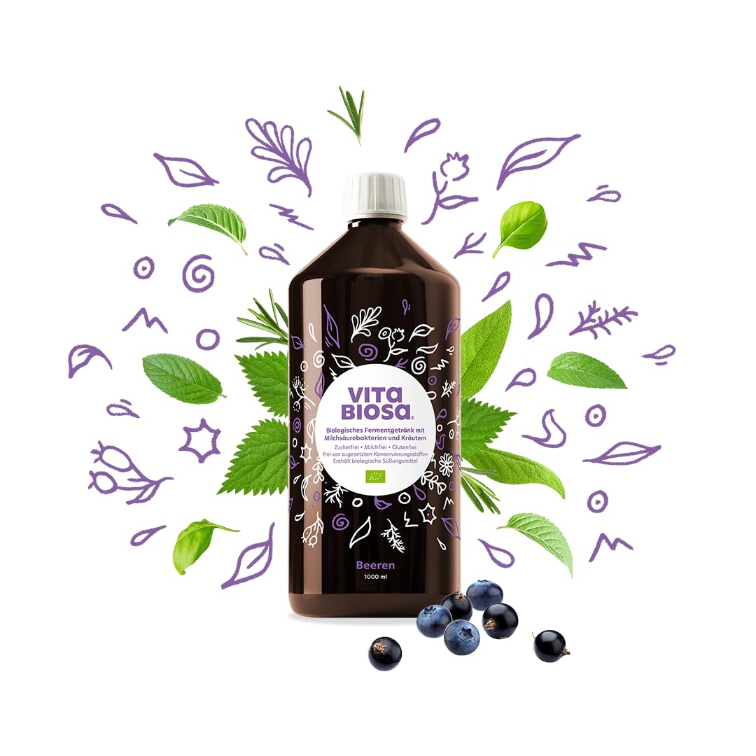 Vita Biosa Vita Biosa Organic Quality Berries 1L - Sweet and Sour Variety with Aronia Concentrate - St. John's Juice and Blueberry Juice - in a popular 1000ml bottle