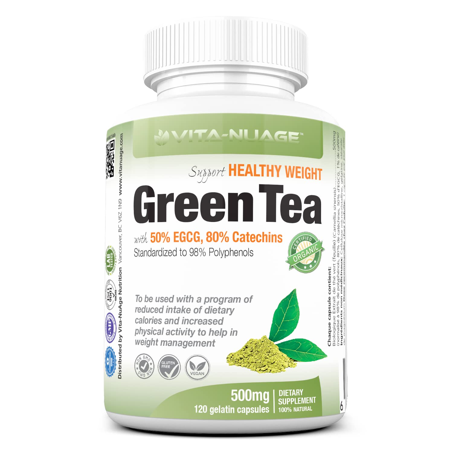 ✓ 100 QUALITY - All Vita-NuAge products are proudly produced in Canada following Health Canada's GMP practices to ensure quality. All products also undergo third-party testing to ensure accuracy, potency, purity and performance. Natural Product License 80087352. ✓ Skin Health and Radiance: Green tea's powerful antioxidants have also been shown to benefit the skin. They can help protect against UV damage, promote skin elasticity, and reduce the appearance of aging signs like wrinkles and fine lines. Green tea can be a wonderful addition to your skincare routine for a healthy and radiant complexion. ✓ Supports Heart Health: The antioxidants present in green tea may promote cardiovascular health. Regular consumption of green tea has been linked to better heart health, such as reduced LDL (bad) cholesterol levels and improved blood pressure management. ✓ Weight Management Support: Green tea has been widely studied for its potential to aid in weight management. It may help boost metabolism and fat oxidation, leading to increased calorie burning. Additionally, its natural caffeine content can provide a mild appetite suppressant effect. ✓ Natural Energy Booster: Green tea contains a moderate amount of caffeine, which provides a gentle and natural energy boost without the jittery side effects often associated with coffee or energy drinks. It can help improve focus, mental clarity, and alertness. ✓ Powerful Antioxidant: Green tea is rich in antioxidants called catechins, particularly epigallocatechin gallate (EGCG). These antioxidants help protect the body against oxidative stress and free radical damage, supporting overall cellular health and boosting the immune system.