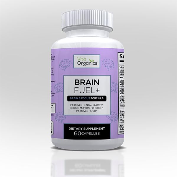 Vita Organics Brain Fuel+ DMAE Blend Memory Supplement for Focus Mood Mental Energy for Busy Men & Women - 60 Capsules Made in USA