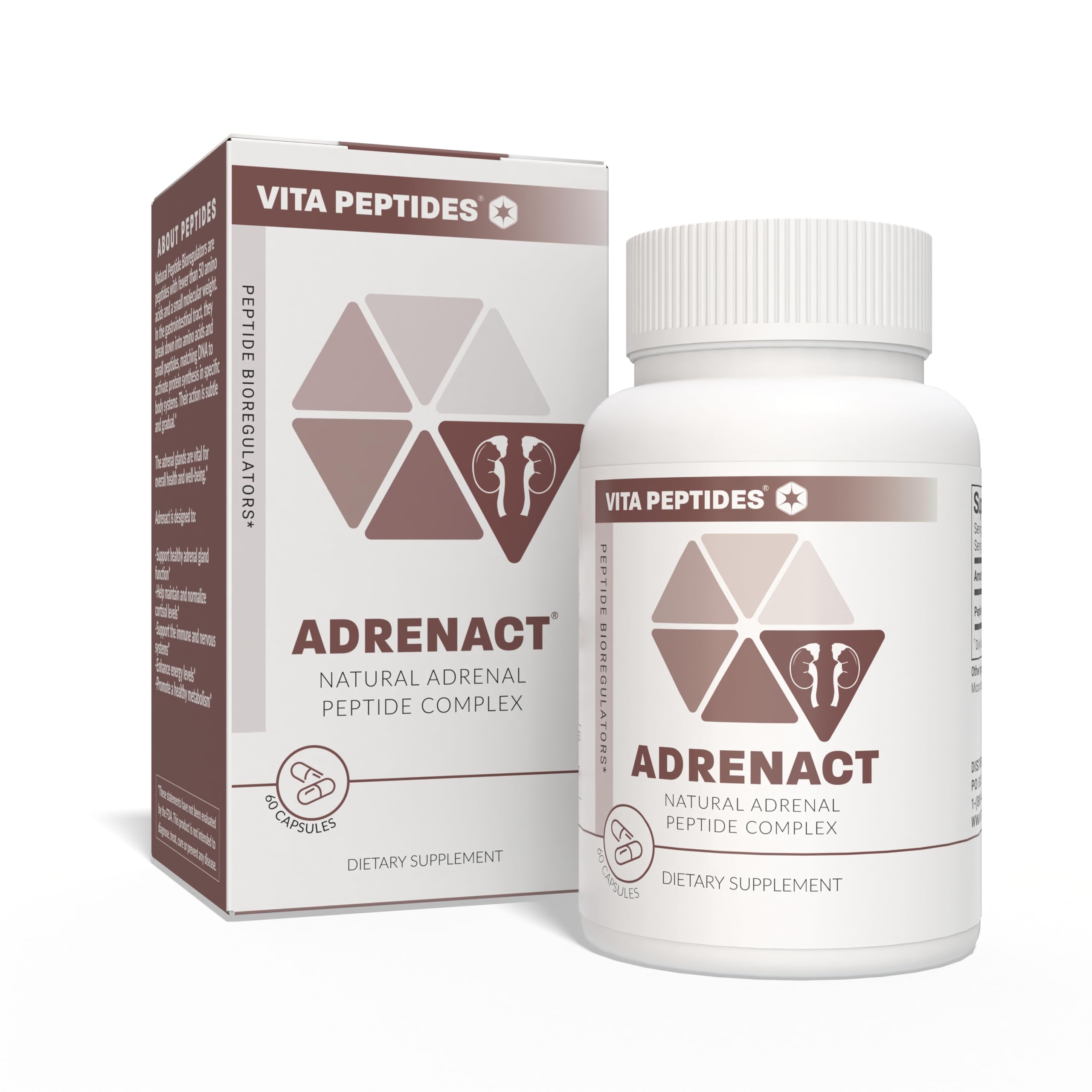 Natural Peptide Bioregulators are peptides with fewer than 50 amino acids and a small molecular weight. In the gastrointestinal tract, they break down into amino acids and small peptides, matching DNA to activate protein synthesis in specific body systems. Their action is subtle and gradual. The adrenal glands are vital for overall health and well-being. Adrenact is designed to: -Support healthy adrenal gland function -Help maintain and normalize cortisol levels -Support the immune and nervous systems -Enhance energy levels -Promote a healthy metabolism
