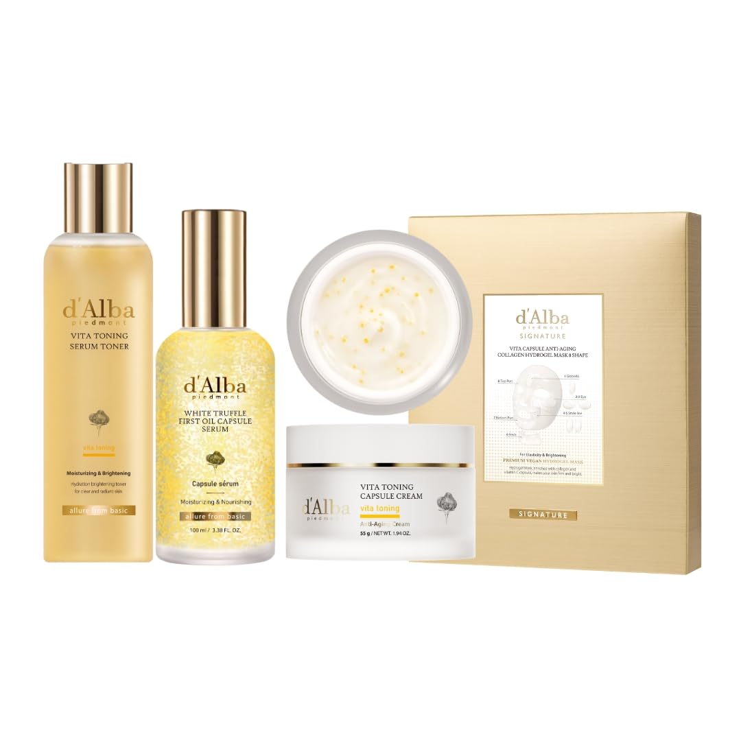 40K GLOW BOOST — Need a skin refresh? 40K vitamin capsules deliver a surge of hydration and glow to revive tired, dull skin instantly. WHY OIL CAPSULE SERUM? — With the vitamin-packed liposome capsule, this product provides optimal solution to tackle dullness and dryness for your skin by offering refreshing boost in glow hydration. NON-STICKY, 100 HOUR HYDRATION — Enjoy all the long-lasting hydration that lasts up to 100 hours without the hassle of sticky residue. It absorbs quickly, leaving your skin feeling fresh and comfortable all day. QUICK FIX FOR FLAKY SKIN — The lightweight, fast-absorbing toner zaps away dryness from the very first application, also providing a significant boost in skin radiance. WHY WHITE TRUFFLE VITA TONING SERUM TONER? — If you are seeking for a water-like serum toner with strong boost for brightening hydration, this product offers best solution to achieve radant glass-like skin texture.
