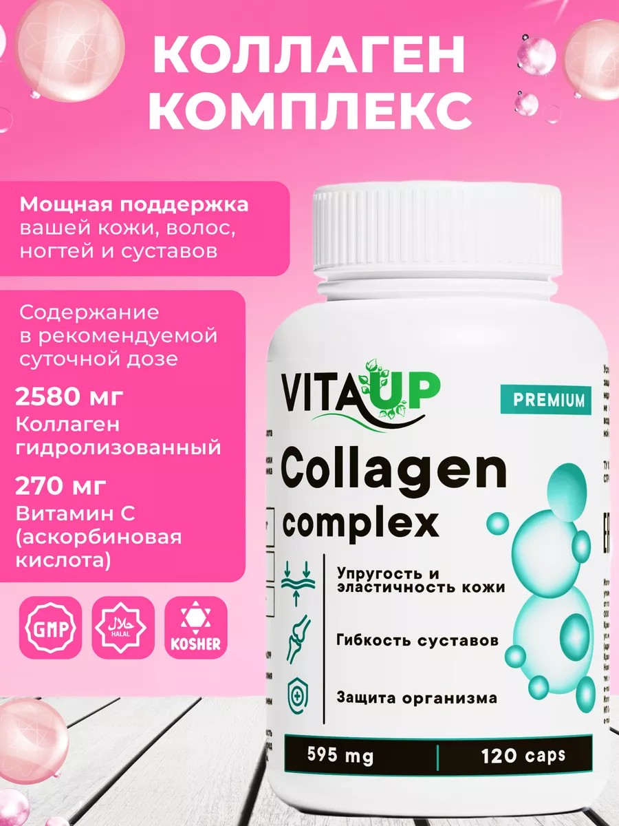 Поддержка коллагена и здоровье кожи и суставов: Vita UP Коллаген комплекс "Collagen complex capsules" создан для комплексной поддержки вашего организма. Коллаген в сочетании с витамином С способствует синтезу собственного коллагена, улучшает состояние кожи и суставов, укрепляет волосы и ногти. Наши капсулы помогают поддерживать молодость и здоровье на долгие годы.
