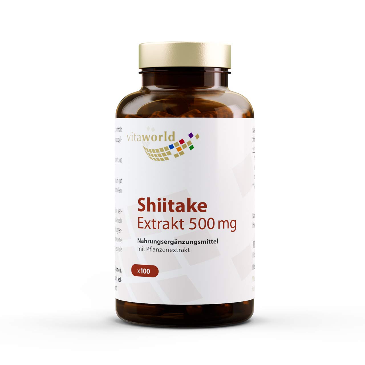 Shiitake 500mg 3 x 100 Capsules Serving size: 3 x 100 vegetarian capsules 186g Ingredients: Shiitake extract 500mg, capsule hydroxypropylmethylcellulose (vegetarian), separating agent: magnesium stearate Directions for use: 1-2 capsules daily with sufficient liquid Best before: minimum 1 year. Keep tightly closed after use. Store in a cool, dry place. The recommended daily dose should not be exceeded. Keep out of reach of young children. Food supplements are not a substitute for a balanced and varied diet and a healthy lifestyle. Vegetarian product INGREDIENTS Shiitake extract 500mg, capsule hydroxypropylmethylcellulose (vegetarian), separating agent: magnesium stearate.Fast, reliable, and affordable delivery to France (2-4 days). Many therapists recommend "Vita World" products in Germany. More than 100,000 satisfied customers in Europe. Proven quality at low prices. Produced in pharmacies in Germany. Shiitake 500mg 3 x 100 Capsules Présentation: 3 x 100 capsules végétariennes 186g Ingrédients: Extrait de Shiitake 500mg, capsule hydroxypropylméthylcellulose (végétarien), agent de séparation: stéarate de magnésium Mode d'emploi: 1-2 capsules par jour avec assez de liquide Date limite de consommation: minimum 1 an L'pouvez garder bien fermé après utilisation. Conserver au frais et au sec. La dose quotidienne recommandée ne doit pas être dépassée. Tenir hors de portée des jeunes enfants. Les compléments alimentaires ne sont pas un substitut pour une alimentation équilibrée et variée et un mode de vie sain. Produit végétarien INGRÉDIENTS Extrait de Shiitake 500mg, capsule hydroxypropylméthylcellulose (végétarien), agent de séparation: stéarate de magnésium.La livraison rapide, fiable et abordable à la France (2-4 jours). De nombreux thérapeutes recommandent produits de "Vita World" en Allemagne. Plus de 100.000 clients satisfaits en Europe. Qualité éprouvée à bas prix. Production en pharmacie en Allemagne.
