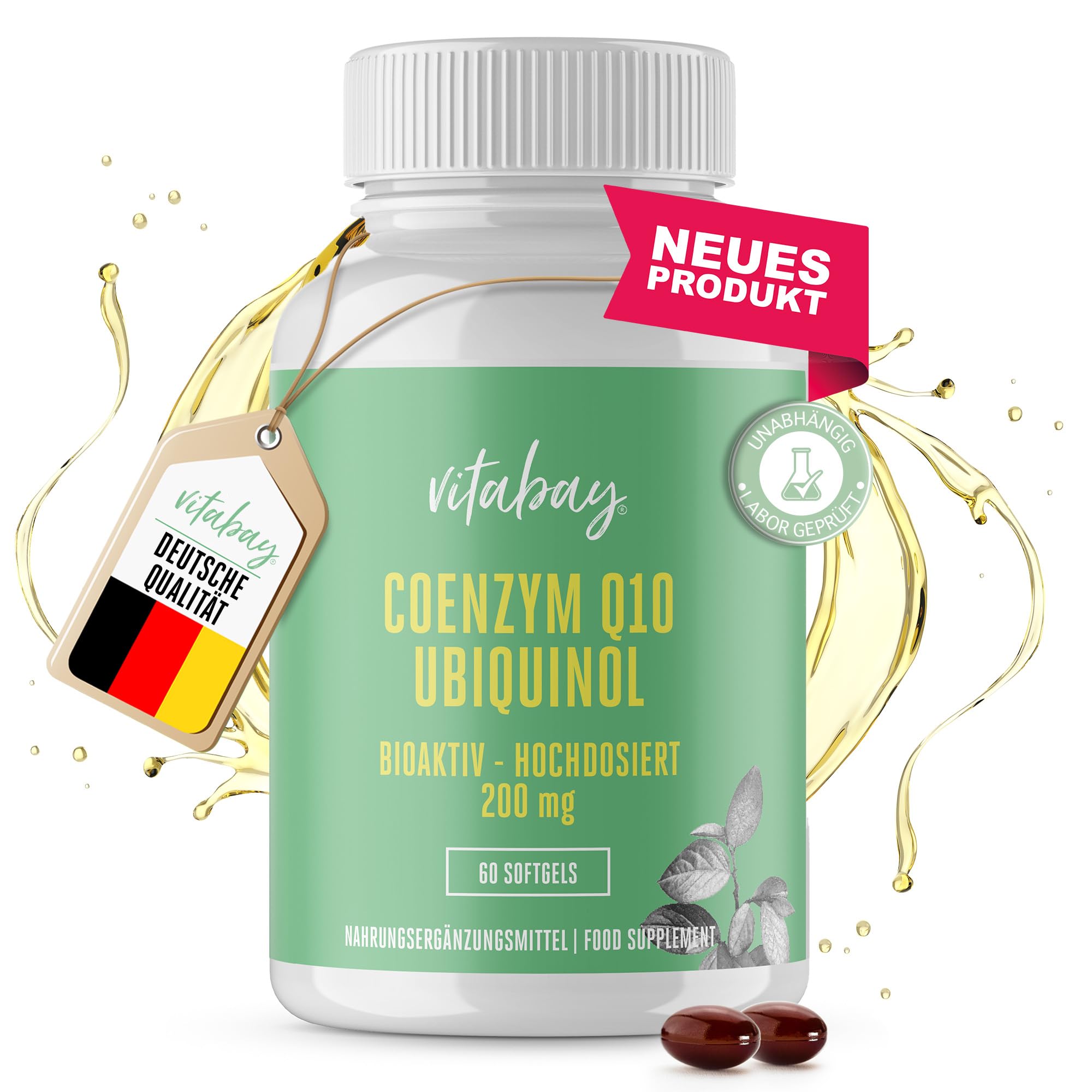 The ubiquinol used in this product is characterized by its 3-8 times higher bioavailability compared to conventional Q10.The patented Vitabay ubiquinol is obtained 100% of natural yeast fermentation, which creates a 100% pure, yeast -free ubiquinol.18 clinical studies have highlighted the superior effectiveness of ubiquinol compared to conventional coenzyme Q10, which makes it a strong antioxidant.It protects the body cells from oxidative stress and free radicals and supports heart, cholesterol and cells.The softgels contain ubiquinol in a high-quality vegan linseed oil basis, which offers significantly better bioavailability than powder capsules.The linseed oil is harvested without the use of animals and contributes to the purity and effectiveness of the product.The softgels are light -protected and leakage -proof in order to preserve the quality of the ingredients.They are fructose, gluten and allergen-free.Light -protected, environmentally friendly, recycled plastic material is used for packaging, which is free of pollutants and plasticizers.Vitabay ubiquinol is manufactured in Europe according to the highest purity and quality standards and guarantees a high active ingredient content without the addition of emulsifiers, stabilizers and impact reinforcers.This makes it an essential nutrient for every cell of the body and supports the energy supply of the cells and organs. Ingredients / ingredients Ingredients: linseed oil (vegan), gelatin (beef)*, humidity (glycerin)*, vitabay ubiquinol®), stabilizer (beeswax), sunflower lecithin, cleaned water, dye (Johannisbrot)*, D-Alpha-tocopherol (vitamin E) OtherTocopherols and sunflower oil.?? 25 years of experience - our goal is to produce the best Q10 ubiquinol capsules.Our 25 years of experience enables us to make a unique, gentle production for maximum effectiveness - only the best for your body!.?? Laboratory - thanks to extensive controls and processing according to international quality standards, we guarantee the tested quality and purity for our Q10 ubiquinol capsules.?? Without additives - our Q10 ubiquinol consists exclusively of biological ingredients.Free of solvent residues, nanoparticles, preservatives and genetic engineering.?? consumption recommendation - for a daily dose of Q 10 Coenzyme 200 mg ubiquinol, consume 2 uncroache capsules every day with sufficient fluid.?? Coenzyme Q10 - is a natural substance that is produced in every body cell and contributes to the support of energy production in the cells and can also strengthen the immune system. Das in diesem Produkt verwendete Ubiquinol zeichnet sich durch seine 3-8 Mal höhere Bioverfügbarkeit im Vergleich zu herkömmlichem Q10 aus. Das patentierte Vitabay Ubiquinol wird zu 100% aus natürlicher Hefefermentation gewonnen, wodurch ein 100% reines, hefefreies Ubiquinol entsteht. 18 klinische Studien haben die überlegene Wirksamkeit von Ubiquinol gegenüber konventionellem Coenzym Q10 hervorgehoben, was es zu einem starken Antioxidans macht. Es schützt die Körperzellen vor oxidativem Stress und freie Radikale und unterstützt Herz, Cholesterin und Zellen. Die Softgels enthalten Ubiquinol in einer hochwertigen veganen Leinsamen-Öl-Basis, die eine deutlich bessere Bioverfügbarkeit als Pulver-Kapseln bietet. Das Leinsamen-Öl wird ohne den Einsatz von Tieren geerntet und trägt zur Reinheit und Wirksamkeit des Produkts bei. Die Softgels sind lichtgeschützt und auslaufsicher, um die Qualität der Inhaltsstoffe zu bewahren. Sie sind fructose-, gluten- und allergenfrei. Für die Verpackung wird lichtgeschütztes, umweltfreundliches, recyceltes Kunststoffmaterial verwendet, das frei von Schadstoffen und Weichmachern ist. Vitabay Ubiquinol wird in Europa nach höchsten Reinheits- und Qualitätsstandards hergestellt und garantiert einen hohen Wirkstoffgehalt ohne Zusatz von Emulgatoren, Stabilisatoren und Wirkverstärkern. Dies macht es zu einem essentiellen Nährstoff für jede Zelle des Körpers und unterstützt die Energieversorgung der Zellen und Organe. INHALTSSTOFFE / ZUTATEN Zutaten: Leinsamenöl (vegan), Gelatine (Rind)*, Feuchthaltemittel (Glycerin)*, Vitabay Ubiquinol®), Stabilisator (Bienenwachs), Sonnenblumenlecithin, gereinigtes Wasser, Farbstoff (Johannisbrot)*, d-alpha-Tocopherol (Vitamin E) sonstige Tocopherole und Sonnenblumenöl.?? 25 JAHRE ERFAHRUNG - Unser Ziel ist es, die besten Q10 Ubiquinol Kapseln herzustellen. Unsere 25-jährige Erfahrung ermöglicht uns eine einzigartige, schonende Herstellung für eine maximale Wirksamkeit - Für deinen Körper nur das Beste!. ?? LABORGEPRÜFT - Dank umfangreichen Kontrollen und Verarbeitung nach internationalen Qualitätsnormen garantieren wir die geprüfte Qualität und Reinheit für unsere Q10 Ubiquinol Kapseln. ?? OHNE ZUSATZSTOFFE - Unser Q10 Ubiquinol besteht ausschließlich aus biologischen Inhaltsstoffen. Frei von Lösungsmittelrückständen, Nanopartikeln, Konservierungsstoffen und Gentechnik. ?? VERZEHREMPFEHLUNG - Für eine tägliche Dosis von Q 10 Coenzyme 200 mg Ubiquinol, täglich 2 unzerkaute Kapseln mit ausreichend Flüssigkeit verzehren. ?? COENZYM Q10 - ist eine natürliche Substanz, die in jeder Körperzelle produziert wird und trägt zur Unterstütztung der Energieproduktion in den Zellen bei und kann zusätzlich das Immunsystem stärken.Vitabay Coenzym Q10 UBIQUINOL Kapseln Hochdosiert 200mg LABORGEPRÜFT Depot Komplex - 60 Kapseln Ubiquinol Q10 Coenzym 200mg - Antioxidant Coenzym Q10 - Coenzyme Q10 200mg Kapseln Q 10 60 stück (1er Pack)