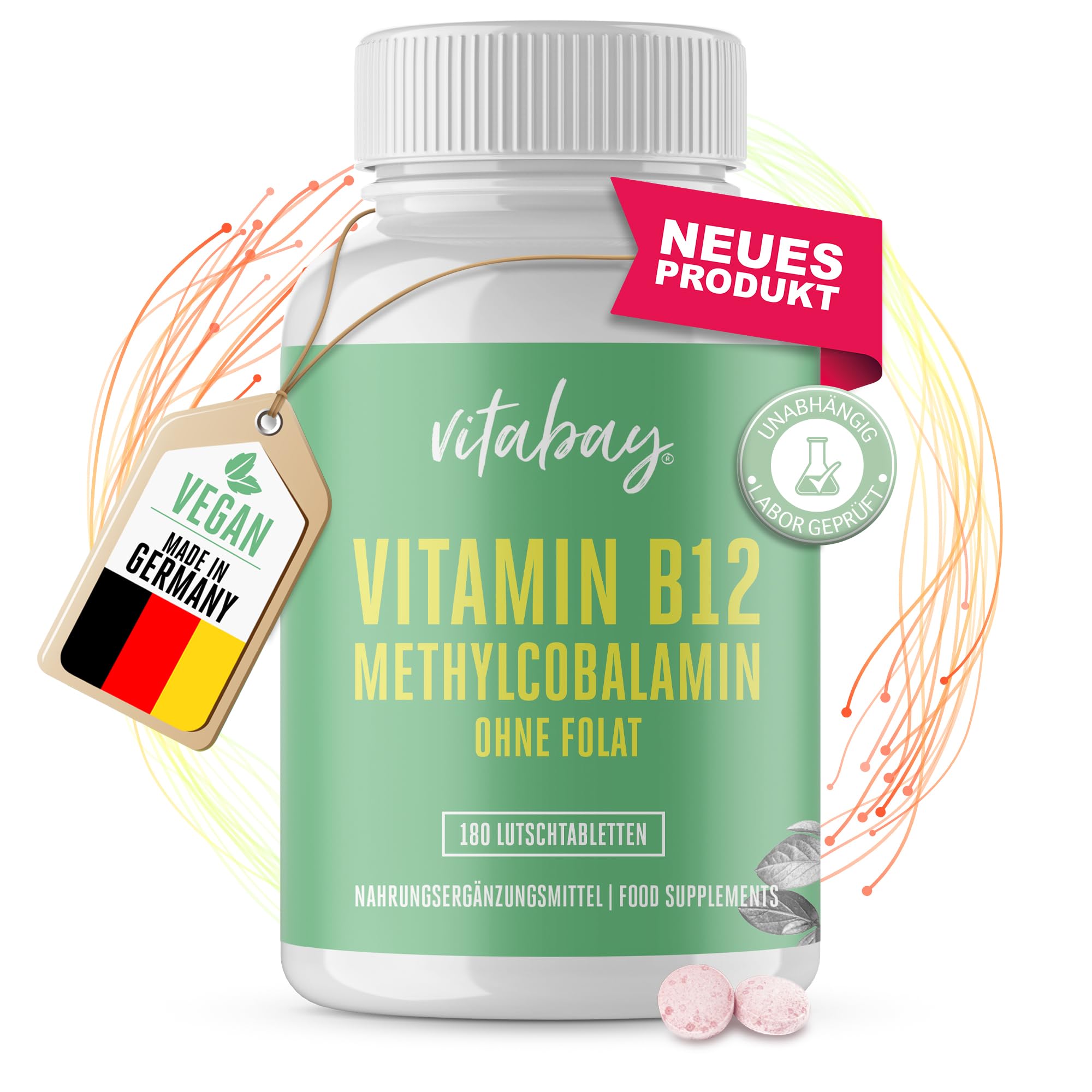Vitabay Vitamin B12 500 µg Lutschtabletten hochdosiert ohne Folat - 180 vegane Tabletten - Vitamin B12 Vitamin vegan Methylcobalamin Vitamin B12 hochdosiert Tabletten Vitamin B 12 Vitamin Tabletten 180 stück (1er Pack)