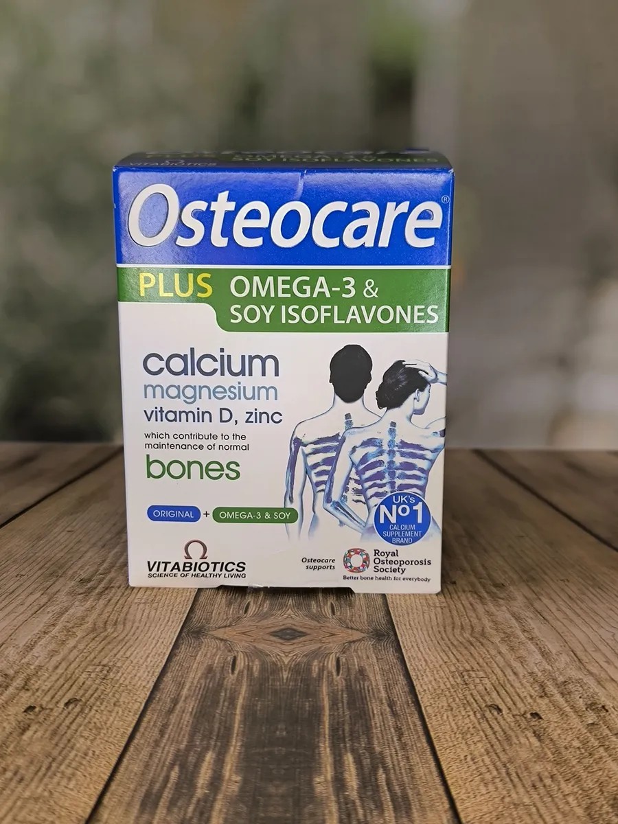 Vitabiotics Osteocare Plus - 56 tablets of calcium, minerals, and vitamin D3, plus 28 capsules of soy isoflavones and omega-3.