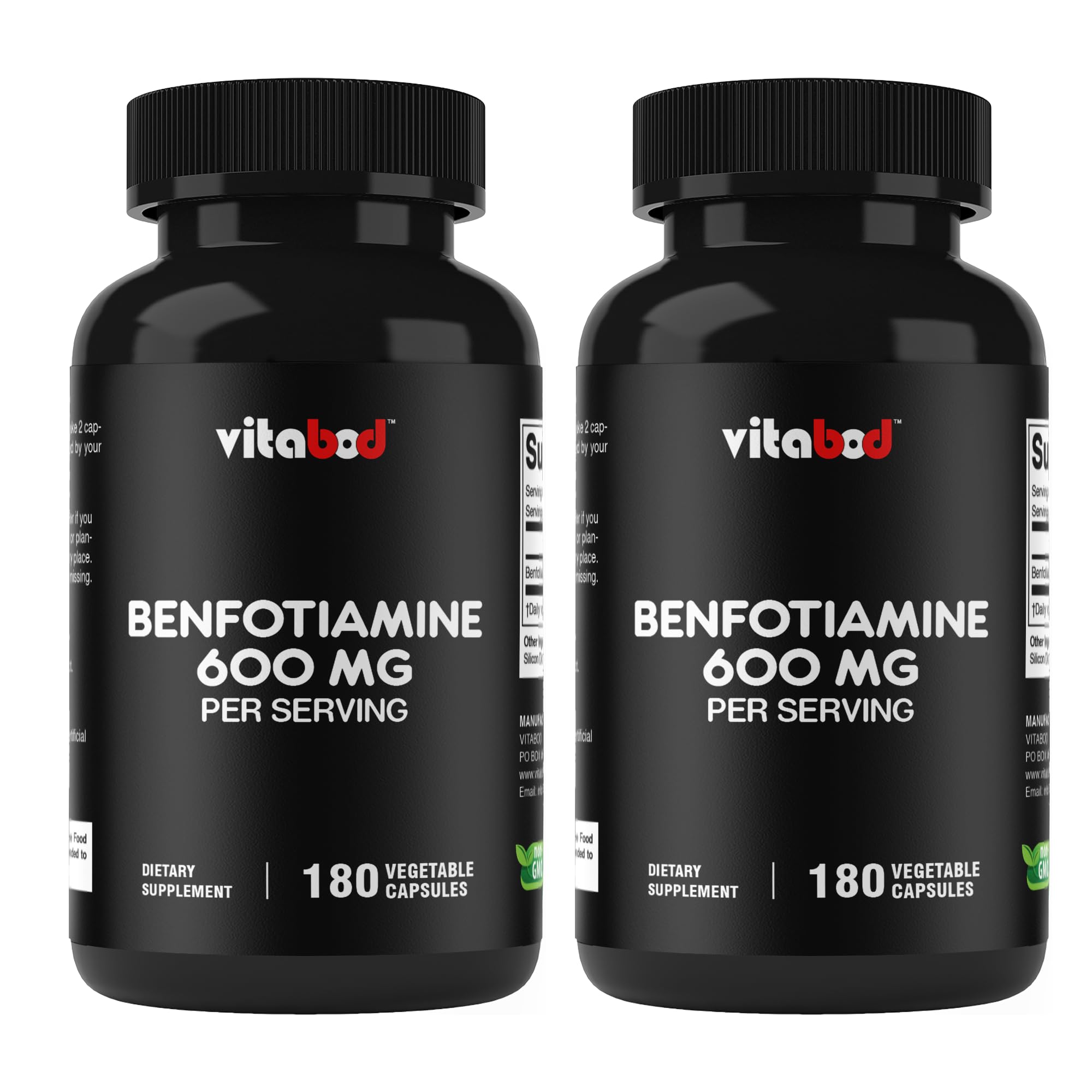 Vitabod Benfotiamine 600mg 180 Vegetarian Capsules Fat-Soluble Vitamin B1 Supplement- 2 Pack