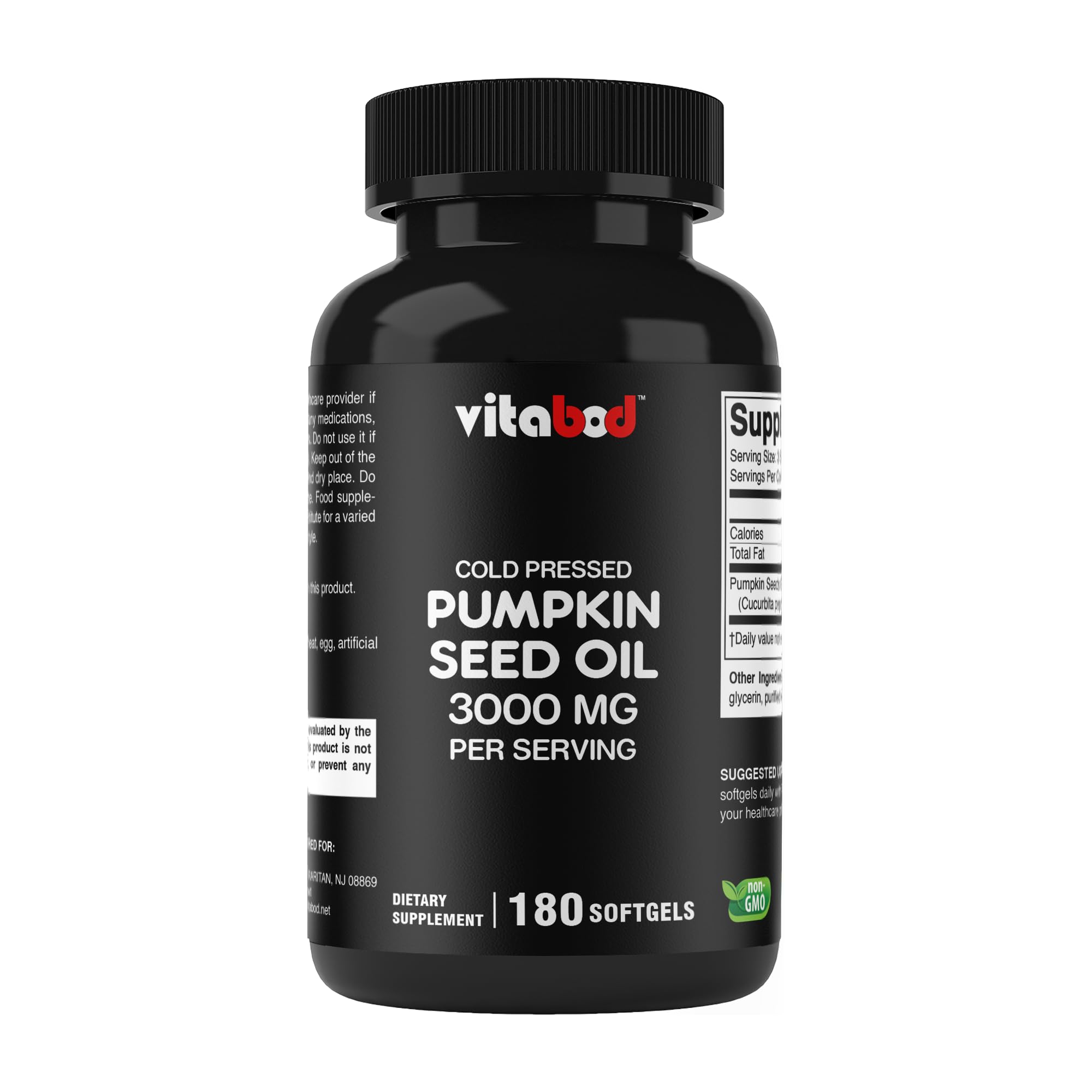 Vitabod Cold Pressed Pumpkin Seed Oil 3000mg per Serving - 180 Softgels - Non-GMO & Gluten Free