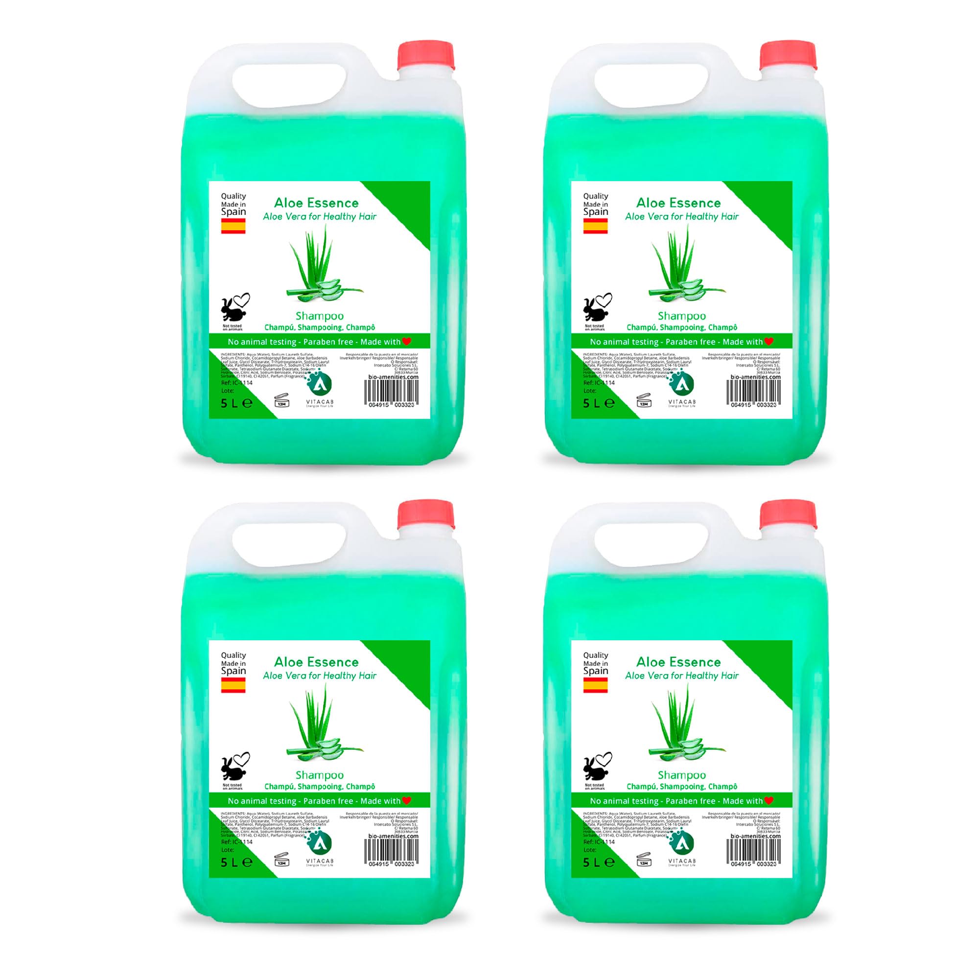 Discover the hydrating and revitalizing power of aloe vera with our 4-pack of 5-liter bottles of aloe vera shampoo, made in Spain especially for hotels and businesses looking to offer high-quality personal care products. This shampoo combines the natural richness of aloe vera with a gentle and effective formula, designed to cleanse, hydrate, and repair hair from root to tip. Every aspect of our shampoo has been carefully considered, from its origin in Spain, known for its tradition of creating quality cosmetic products, to its packaging in 5-liter bottles, designed to be both economical and environmentally friendly. This combination not only guarantees customer satisfaction but also contributes to sustainable practices within your business. The deep hydration of aloe vera is ideal for all hair types, including those requiring extra care due to chemical treatments or coloring. Its balanced formula restores hair's natural shine, improves texture, and makes it more manageable, making every wash a truly rejuvenating experience. Perfect for a wide range of environments, from hotels and B Bs to gyms and spas, our aloe vera shampoo is the preferred choice for those seeking quality, versatility, and a commitment to the environment. Offer your guests or clients a product that not only cares for their hair but also promotes well-being and sustainability. By choosing our aloe vera shampoo, you benefit from a product that respects both hair health and the health of the planet. Invite your guests to immerse themselves in a unique hair care experience and let them enjoy the softness, shine, and vitality that only our shampoo can provide.Versatile and suitable for everyone: Ideal for use in hotels, gyms, spas, and other commercial spaces, this aloe vera shampoo is suitable for both men and women and all hair types, including color-treated or chemically treated hair. Hydration and softness for hair: The formula of this shampoo is specially designed to hydrate and soften hair, restore its natural shine, and make it more manageable. It is perfect for daily use, leaving hair healthy and revitalized. Economical and sustainable solution: Presented in a 5-liter container, this shampoo is not only economical but also environmentally friendly, reducing packaging waste and promoting responsible consumption practices in homes and commercial spaces. High-quality Spanish manufacturing: Proudly made in Spain, this shampoo combines tradition and quality, using the finest natural ingredients for an effective and gentle formula. Its manufacturing process guarantees the highest quality and satisfaction with every use. Enriched with natural aloe vera: our set of four 5-liter shampoo bottles harnesses the moisturizing and repairing properties of aloe vera, providing gentle yet deep conditioning for all hair types. Ideal for revitalizing hair and scalp, leaving hair feeling fresh and soft.Vitacab - Bidon de 5 litres de shampooing à l'Aloe Vera - Shampooing à l'aloe vera - Shampooing naturel - Shampooing d'hébergement - Shampooing pour tous types de cheveuxDESCRIPTION DU PRODUIT Découvrez le pouvoir hydratant et revitalisant de l'aloe vera avec notre pack de 4 bidons de 5 litres de shampooing à l'aloe vera, fabriqué en Espagne spécialement pour les hôtes et les espaces commerciaux qui cherchent à offrir des produits de soins personnels de haute qualité. Ce shampooing combine la richesse naturelle de l'aloe vera avec une formule douce et efficace, conçue pour nettoyer, hydrater et réparer les cheveux de la racine aux pointes. Chaque aspect de notre shampooing a été soigneusement étudié, depuis son origine en Espagne, connu pour sa tradition dans la création de produits cosmétiques de qualité, jusqu'à sa présentation en bidons de 5 litres, conçu pour être à la fois économique et respectueux de l'environnement. Cette combinaison garantit non seulement la satisfaction de vos clients ou clients, mais contribue également à des pratiques durables dans votre entreprise. L'hydratation profonde de l'aloe vera est idéale pour tous les types de cheveux, y compris ceux qui nécessitent des soins supplémentaires en raison de traitements chimiques ou de colorations. Sa formule équilibrée restaure l'éclat naturel des cheveux, améliore leur texture et facilite leur manipulation, faisant de chaque lavage une expérience de rajeunissement totale. Parfait pour un large éventail d'environnements, des hôtels et B B aux gymnases et spas, notre shampooing à l'aloe vera est le choix préféré pour ceux qui recherchent qualité, polyvalence et engagement envers l'environnement. Offrez à vos invités ou clients un produit qui non seulement prend soin de leurs cheveux, mais favorise également le bien-être et la durabilité. En choisissant notre shampooing à l'aloe vera, vous bénéficiez d'un produit qui respecte à la fois la santé des cheveux et celle de la planète. Invitez vos invités à vous immerger dans une expérience de soin capillaire unique et laissez-les profiter de la douceur, de la brillance et de la vitalité que seul notre shampooing peut offrir.Polyvalent et adapté à tous : idéal pour une utilisation dans les hôtels, les gymnases, les spas, et autres espaces commerciaux, ce shampooing à l'aloe vera convient aux hommes et aux femmes et convient à tous les types de cheveux, y compris les cheveux colorés ou traités chimiquement. Hydratation et douceur pour les cheveux : la formule de ce shampooing est spécialement conçue pour hydrater et adoucir les cheveux, restaurer leur brillance naturelle et faciliter leur manipulation. Il est parfait pour un usage quotidien, laissant les cheveux sains et revitalisés. Solution économique et durable : présenté dans un bidon de 5 litres, ce shampooing est non seulement économique mais aussi respectueux de l'environnement, réduisant le gaspillage d'emballages et promouvant des pratiques de consommation responsable dans les logements et les espac