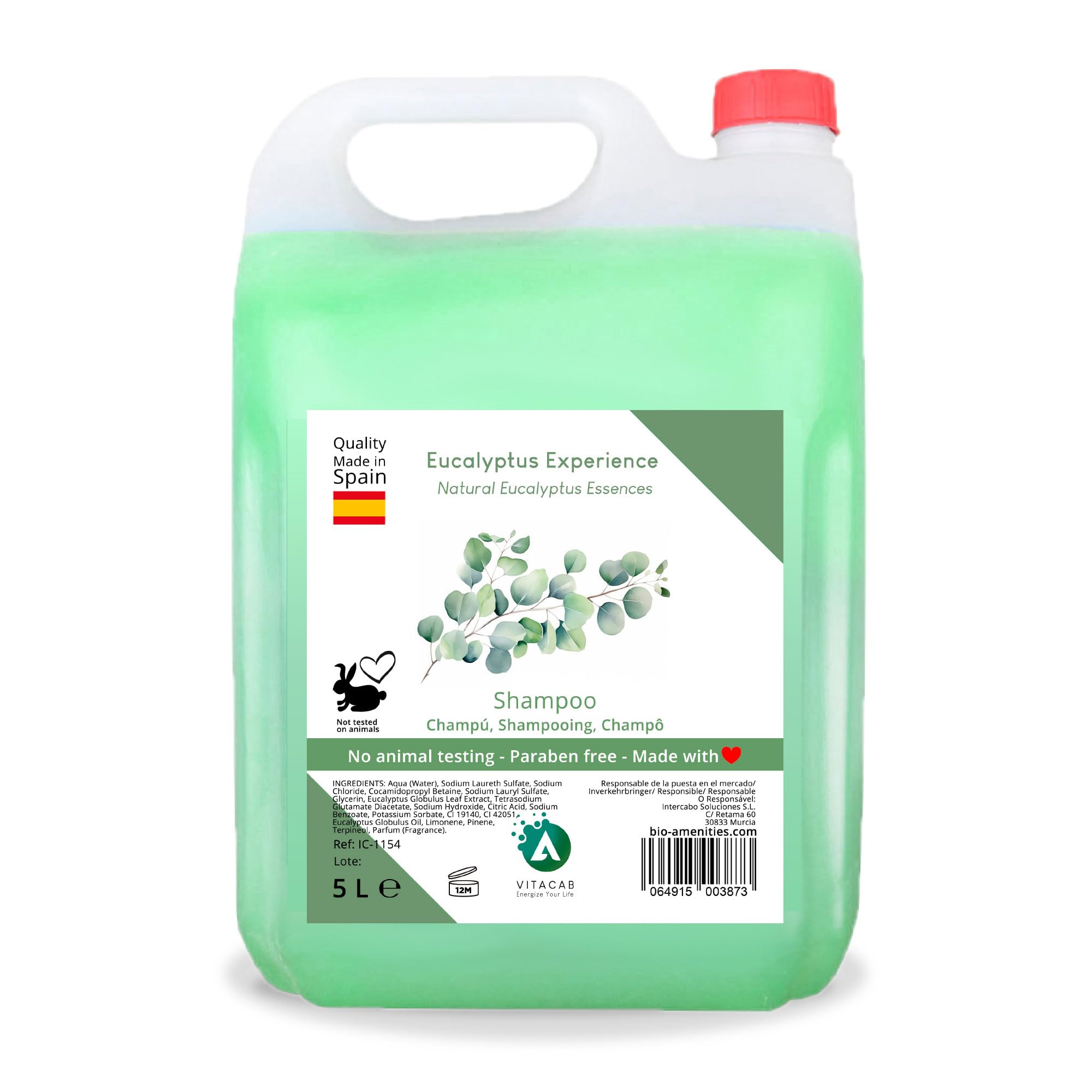 Discover the freshness and purifying power of eucalyptus shampoo in a 5-liter bottle, made in Spain. This shampoo is specially formulated to offer a superior washing experience, combining the purity of natural ingredients with the science of hair hydration. The 5-liter bottle is ideal for those seeking an economical and effective hair care solution, whether at home or in a professional setting such as beauty salons or spas. Its formula, enriched with eucalyptus extract, not only deeply cleanses but also hydrates and nourishes the hair, leaving it soft, manageable, and with a natural shine. Eucalyptus is known for its refreshing and purifying properties, making this shampoo an excellent choice for revitalizing the scalp and preventing the buildup of residue and oil. Furthermore, its invigorating fragrance transforms every wash into a moment of well-being and relaxation. Suitable for all hair types, this shampoo is especially beneficial for those with dry, oily, or damaged hair, helping to restore hair health and maintain its natural balance. Its gentle yet effective formula is safe for daily use, delivering visible results from the first application. DIRECTIONS FOR USE Apply to wet hair, massage gently, and rinse thoroughly with water.Ideal for all hair types, including dry, oily, and damaged hair, helping to maintain a healthy scalp. A refreshing eucalyptus scent revitalizes the senses and provides a deep, lasting feeling of cleanliness. Made in Spain with high-quality ingredients, guaranteeing a safe and effective product for the whole family. The moisturizing formula nourishes hair from root to tip, leaving it naturally soft and shiny. This 5-liter container of eucalyptus shampoo is perfect for extended use in homes and commercial establishments.Vitacab - Bidon de 5 litres de shampooing à l'eucalyptus - Shampooing eucalyptus - Naturel - Shampooing pour hébergement - Pour tous types de cheveuxDESCRIPTION DU PRODUIT DESCRIPTION DU PRODUIT Découvrez la fraîcheur et le pouvoir purifiant du shampooing à l'eucalyptus en format de 5 litres, fabriqué en Espagne. Ce shampooing est spécialement formulé pour offrir une expérience de lavage supérieure, combinant la pureté des ingrédients naturels avec la science de l'hydratation capillaire. Le bidon de 5 litres est idéal pour ceux qui recherchent une solution économique et efficace pour le soin des cheveux, que ce soit à la maison ou dans un environnement professionnel comme les salons de beauté ou les spas. Sa formule enrichie en extrait d'eucalyptus nettoie non seulement en profondeur, mais hydrate et nourrit les cheveux, les laissant doux, maniables et avec une brillance naturelle. L'eucalyptus est connu pour ses propriétés rafraîchissantes et purifiantes, faisant de ce shampooing un excellent choix pour revitaliser le cuir chevelu et prévenir l'accumulation de résidus et de graisse. De plus, son parfum revigorant transforme chaque lavage en un moment de bien-être et de détente. Convient à tous les types de cheveux, ce shampooing est particulièrement bénéfique pour ceux qui ont des cheveux secs, gras ou abîmés, aidant à restaurer la santé des cheveux et à maintenir un équilibre naturel. Sa formule douce et efficace est sans danger pour un usage quotidien, offrant des résultats visibles dès la première utilisation. MODE D'EMPLOI Appliquer sur cheveux humides, masser doucement et rincer à l'eauIdéal pour tous les types de cheveux, y compris les cheveux secs, gras et abîmés, aidant à maintenir un cuir chevelu sain. Parfum rafraîchissant d'eucalyptus qui revitalise les sens et procure une sensation de propreté profonde et durable. Fabriqué en Espagne avec des ingrédients de haute qualité, garantissant un produit sûr et efficace pour toute la famille. Formule hydratante qui nourrit les cheveux de la racine aux pointes, offrant une douceur et une brillance naturelles. Bidon de 5 litres de shampooing à l'eucalyptus, parfait pour une utilisation prolongée dans les maisons et les établissements commerciaux.