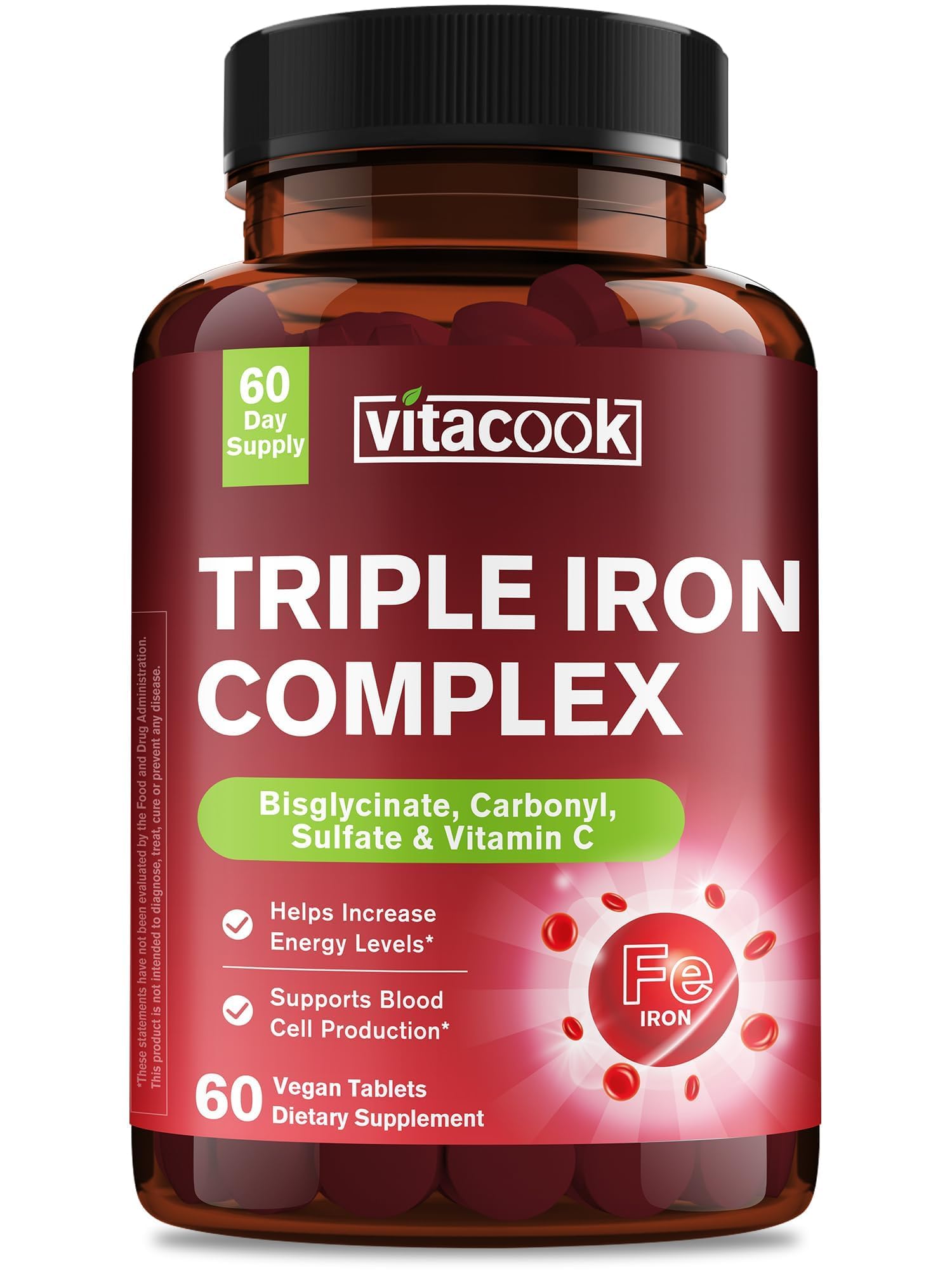 Crafted for Health: Whether you're nourishing your body or mind, Vitacook is here to provide the high-quality ingredients you need to live a healthier, more vibrant life. . Our Mission: We aim to deliver the highest quality dietary supplements for you and your loved ones. Our dedication to quality and purity has made our products exceptional and unparalleled. Our mission is to provide you with top-quality dietary supplements to help you and your family achieve your health goals. . Pure Exceptional Products: Our supplements are made with pure, plant-based ingredients and to support your energy, health, and well-being. They are non-GMO and do not contain gluten, dairy, soy, artificial colors, and preservatives. All VitaCook products are lab tested for purity and quality and made in USA in a GMP-audited facility. We take our time to provide the best nutritional supplements possible for you and your family. Iron Out Fatigue, Energize Your Day : Enhanced with vitamin C, our balanced blend ensures maximum action of iron to strengthen the body and reduce tiredness. This perfect pair also supports healthy oxygen transport and red blood cell formation, helping improve immune function and sustain energy for everyday vitality. . Triple-Action Iron Support : Our once-daily, vegan iron formula features a unique blend of 3 highly bioavailable forms (bisglycinate, sulfate, and carbonyl iron) for superior absorption and GI tolerance. This advanced complex provides 65 mg of elemental iron, making it simple to replenish iron stores — especially for those who train hard or follow a vegetarian diet. .