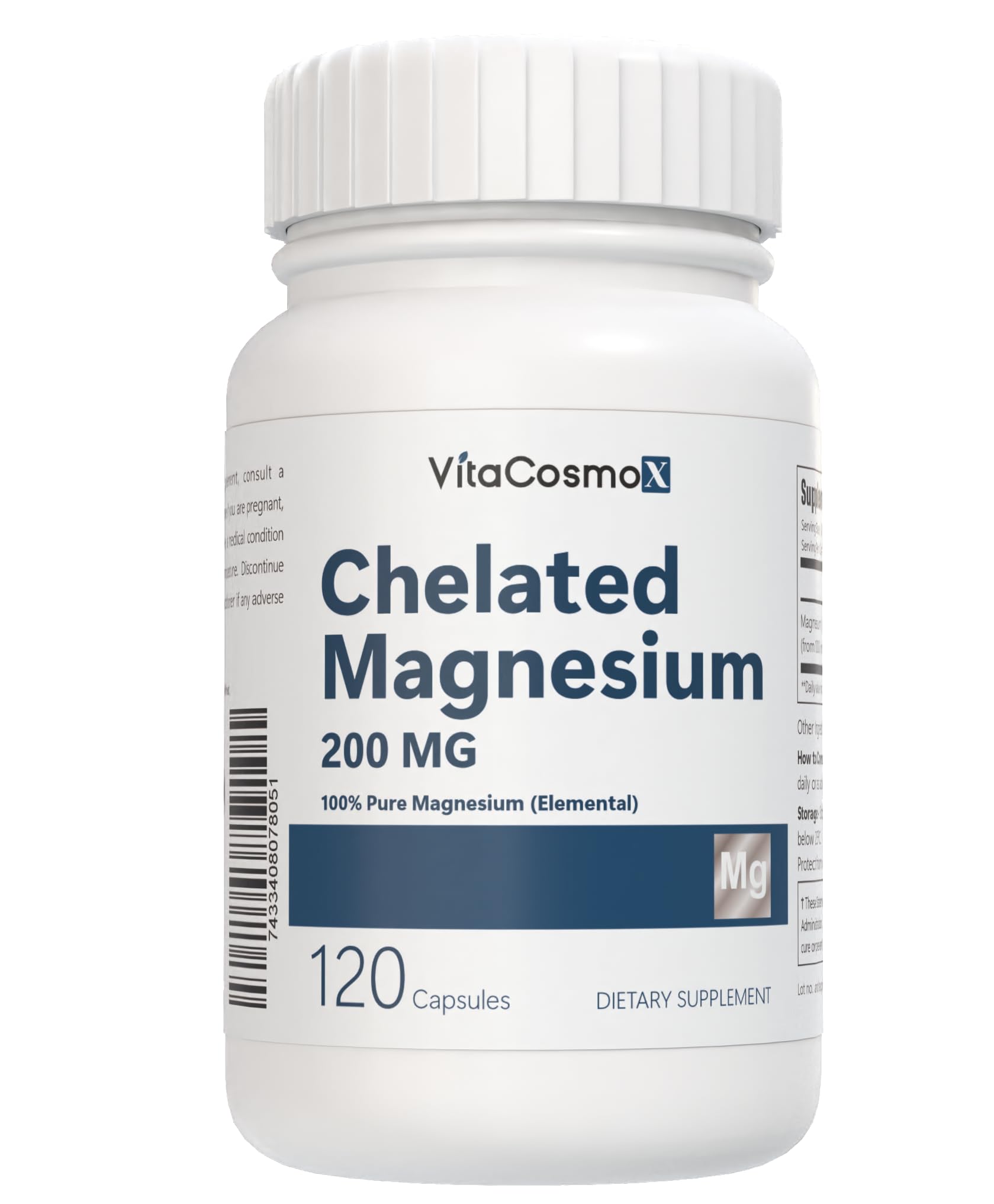 VitaCosmoX Chelated Magnesium Bisglycinate 200mg 120 Vegan Capsules 60 Servings Gluten Free Non-GMO and Vegetarian Friendly