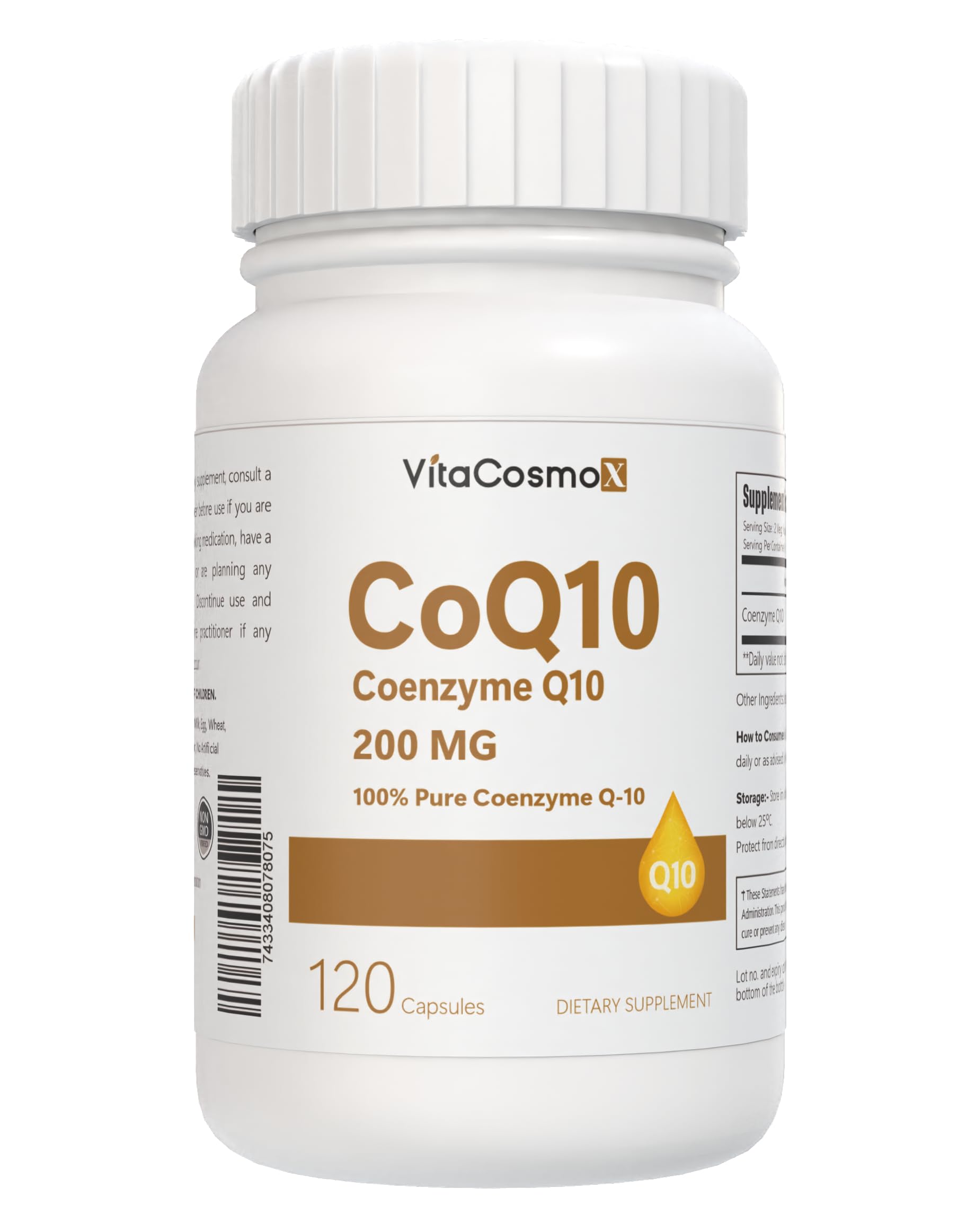 VitaCosmoX CoQ10 Vegan Capsules 120 Count 200 mg Coenzyme Q10 Non-GMO Gluten-Free