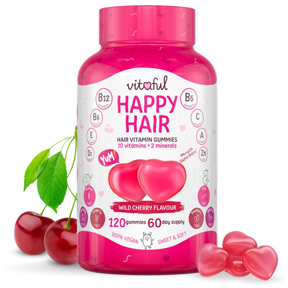 VITAFUL Happy Hair - Hair Growth Gummies - Food Supplement for Hair - 120 Vitamin Gummies (2 Months Cure) - Biotin - Vitamins Minerals - Against Hair Loss - 100% Vegan