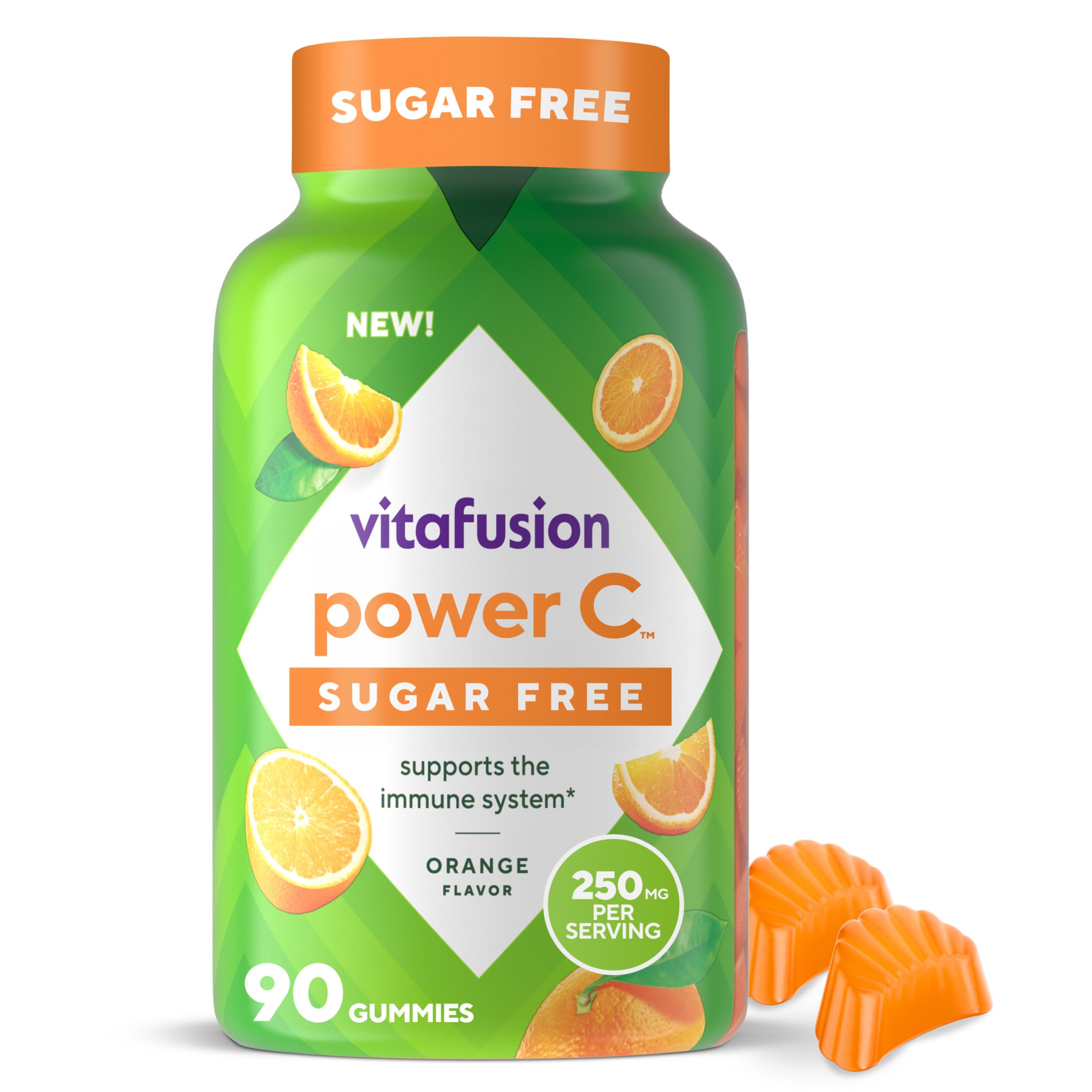 : Vitafusion™ Power C Sugar Free offers as much vitamin C as 8 tangerines per serving to support your immune health. In addition, this formula contains 0g of added sugar for those seeking alternative sweeteners. Ingredients: Vitamin CVitafusion Power C Sugar Free provides as much vitamin C as 8 tangerines per serving to support your immune health. Gluten-free, dairy-free, high fructose corn syrup-free, and free of FD C-compliant synthetic colors. Vitafusion Sugar Free Power C.Description du produit vitafusion™ Power C Sugar Free offre autant de vitamine C que 8 mandarines par portion pour soutenir votre santé immunitaire. En outre, cette formule contient 0 g de sucre ajouté pour ceux qui recherchent d'autres options d'édulcorant à sucre Ingrédients Vitamine Cvitafusion Power C Sugar Free fournit autant de vitamine C que 8 mandarines par portion pour soutenir votre santé immunitaire. Sans gluten, sans produits laitiers, sans sirop de maïs à haute teneur en fructose, sans colorants synthétiques FD C. Vitafusion Sugar Free Power C.VITAFUSION Sugar Free Power C