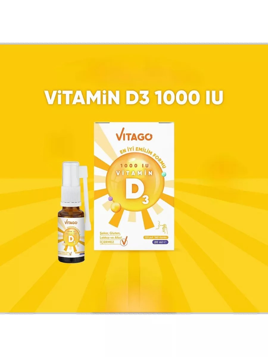 Наш продукт Vitago D3 1000 МЕ не содержит сахара, подсластителей, красителей, консервантов, алкоголя, глютена и BHA. Наш продукт производится на наших собственных предприятиях и имеет сертификаты GMP, HACCP, FDA и HALAL, и вы можете использовать его безопасно .В горлышке флакона имеется капельница для использования детьми.