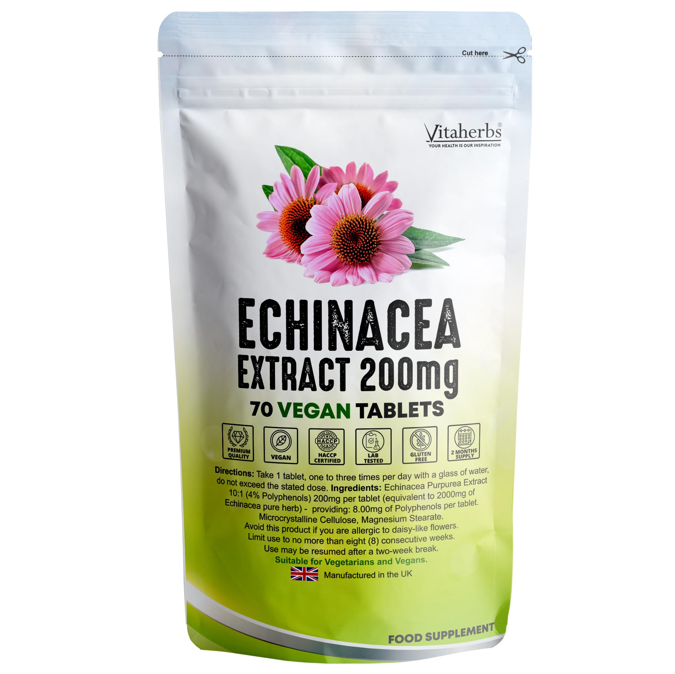 Vitaherbs Echinacea Tablets 200mg - 70 Vegan Tablets | Echinacea Purpurea - Premium Quality - Made in The UK 70 count (Pack of 1)