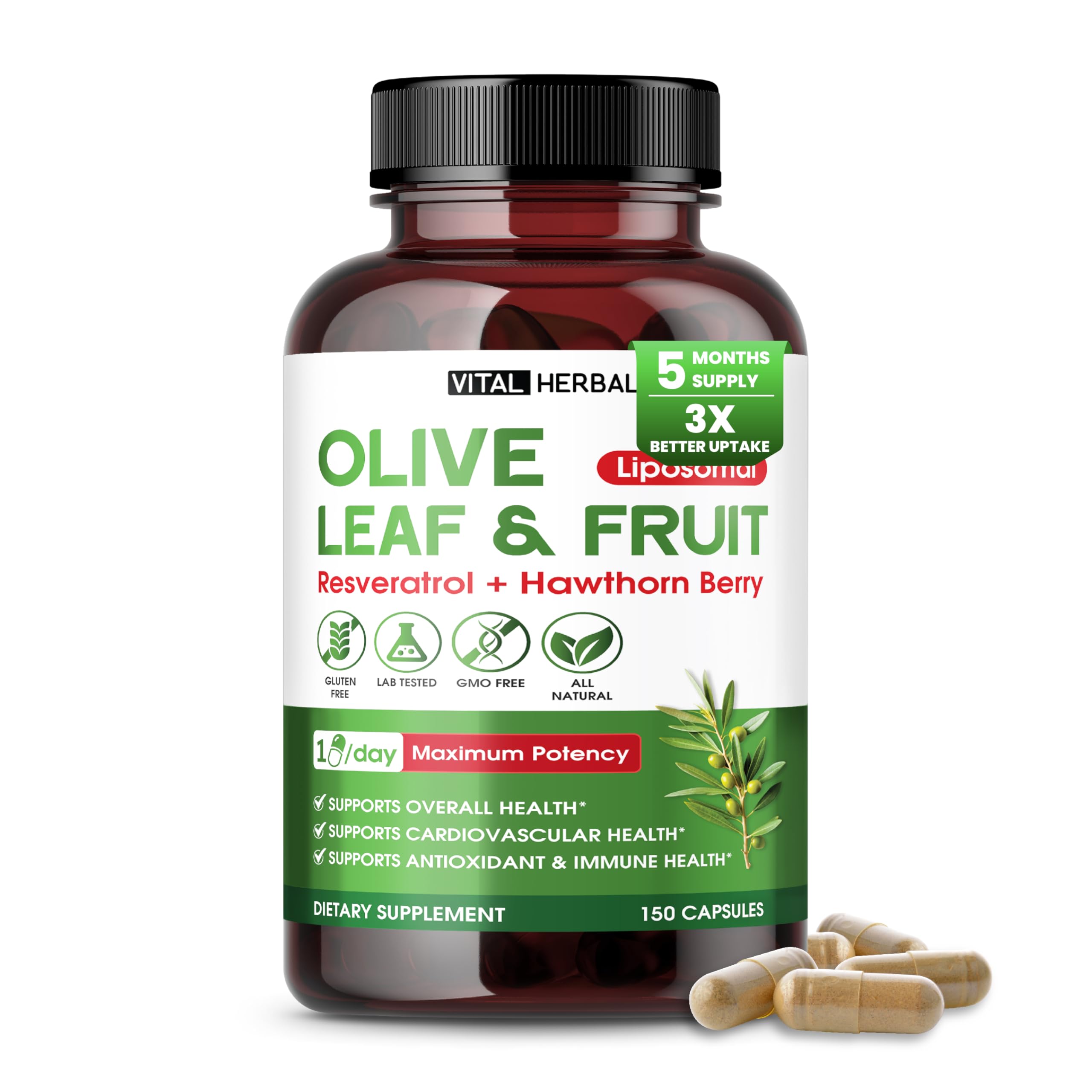 Rediscover a sense of daily energy and natural resilience with Vital Herbal Liposomal Olive. This 11-in-1 synergistic blend features Olive, Trans-Resveratrol, Hawthorn Berry, Grape Seed, Elderberry, and more to support heart health, immune function, and antioxidant protection. With just 1 capsule a day, you can support natural energy, maintain a balanced immune system, and promote overall vitality. Enhanced with advanced liposomal technology for better nutrient absorption, plus a generous 150-day supply, it's convenient, effective, and built to support your wellness goals — every single day.