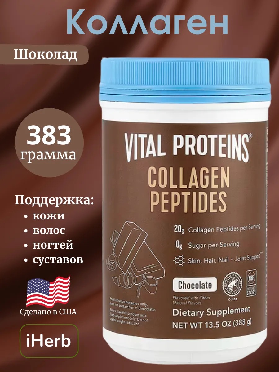 Vital Proteins Коллагеновые пептиды с шоколадным вкусом — это пищевая добавка, содержащая пептиды коллагена из говядины, обогащённые натуральным какао. Продукт разработан для поддержки здоровья кожи, волос, ногтей, суставов и костей, предлагая при этом приятный шоколадный вкус.