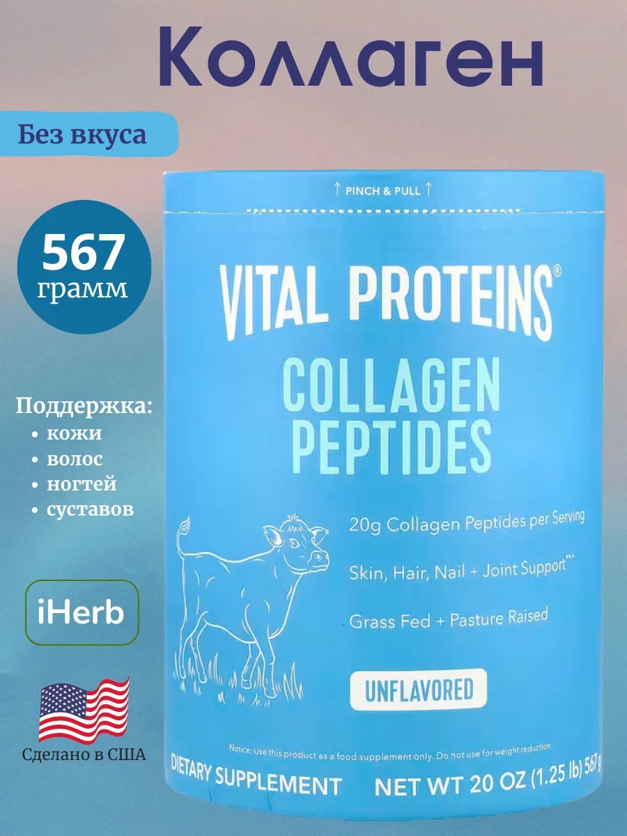 Vital Proteins Пептиды Коллагена — это высококачественный гидролизованный коллаген, который поддерживает здоровье кожи, суставов, волос, ногтей и костей. Этот продукт легко растворяется в горячих и холодных жидкостях, не имеет вкуса и запаха, что делает его удобным для ежедневного использования.