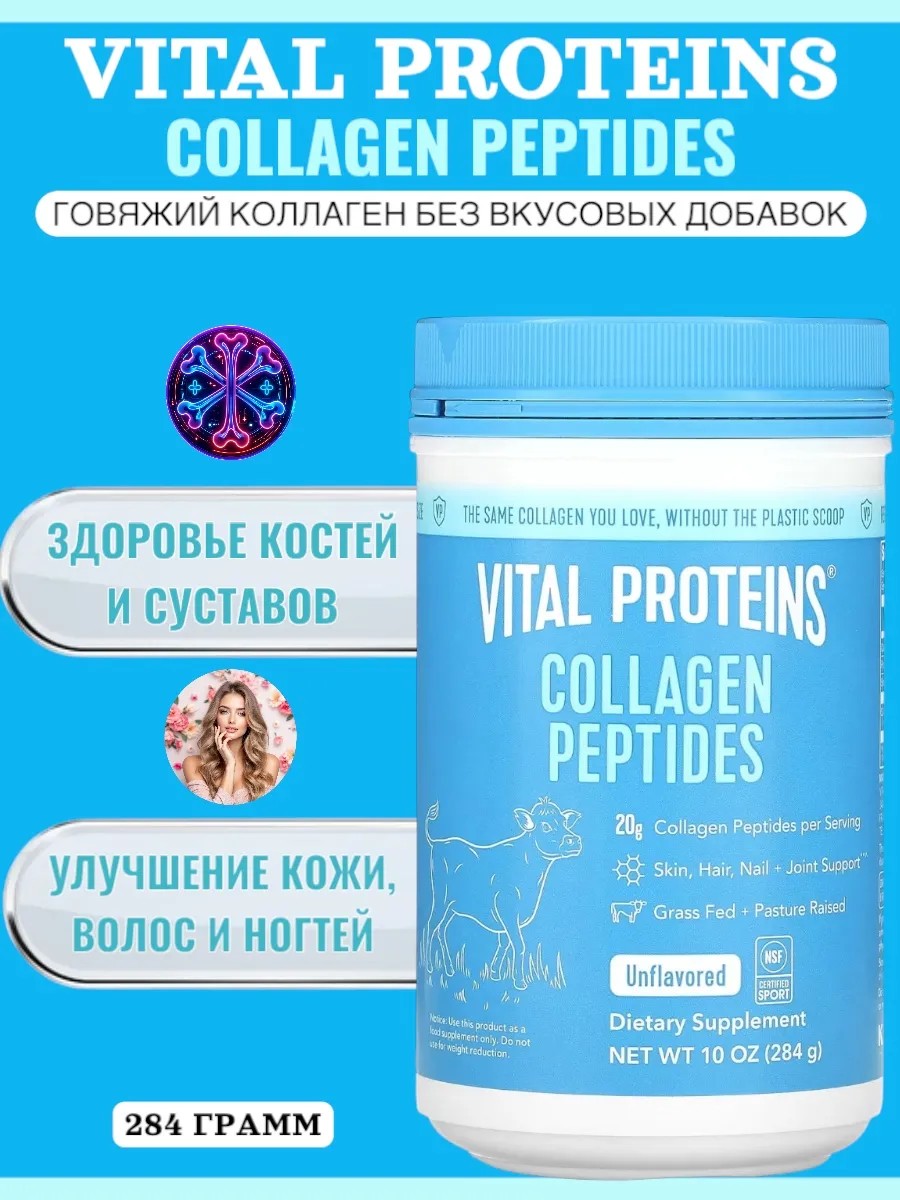 Пептиды говяжего коллагена, без вкусовых добавок, 284 г