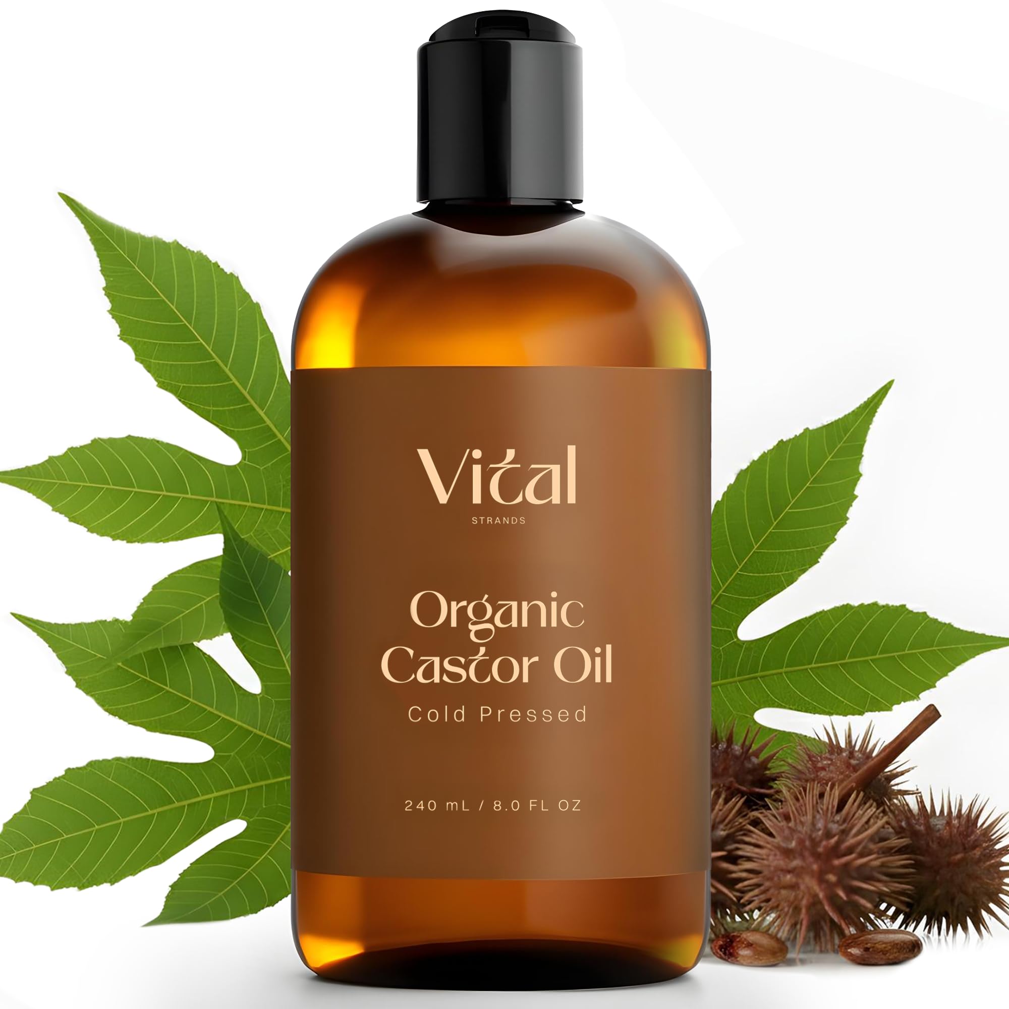 ✓ Pure Sustainable: Cold pressed, hexane free, vegan, cruelty free, and bottled in premium dark bottle to protect freshness and integrity because what you put on your body matters. ✓ Deep Hydration: Massage onto dry skin, scalp, or ends of hair to restore softness and lock in moisture. Perfect for soothing dry patches and revitalizing dull hair. ✓ Your Boldest Look: This nutrient-rich oil doubles as a natural eyelash and eyebrow serum. Apply a small amount nightly to lashes and brows for a thicker, bolder, and more defined look. ✓ Wellness Routine: For targeted support, apply a castor oil (aceite de ricino) pack over your abdomen, joints, or other desired areas with a flannel soaked in our premium organic oil. Use weekly or as needed for optimal results. ✓ One-Ingredient Wonder: Vital Strands Organic Castor Oil is packed with nourishing omegas and ricinoleic acid, making it a powerhouse for hair growth and hydration. Use it as a natural hair treatment for stronger, fuller strands or apply as a castor oil pack for extra wellness benefits.