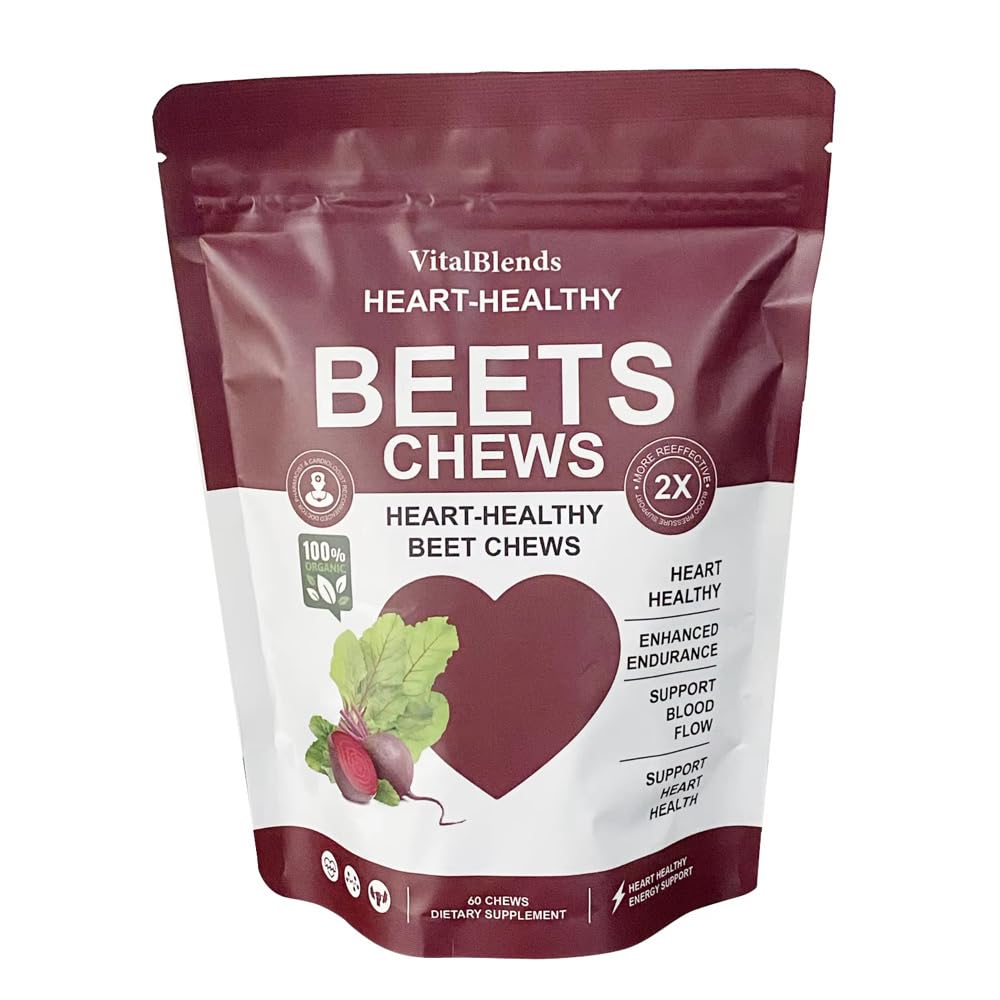 VitalBlends Beetroot Heart Chews Nitric Oxide and Blood Pressure Support for Energy Stamina & Heart Health. Grape Seed Extract & Non-GMO Beet Root Powder Energy Supplement 60 Count