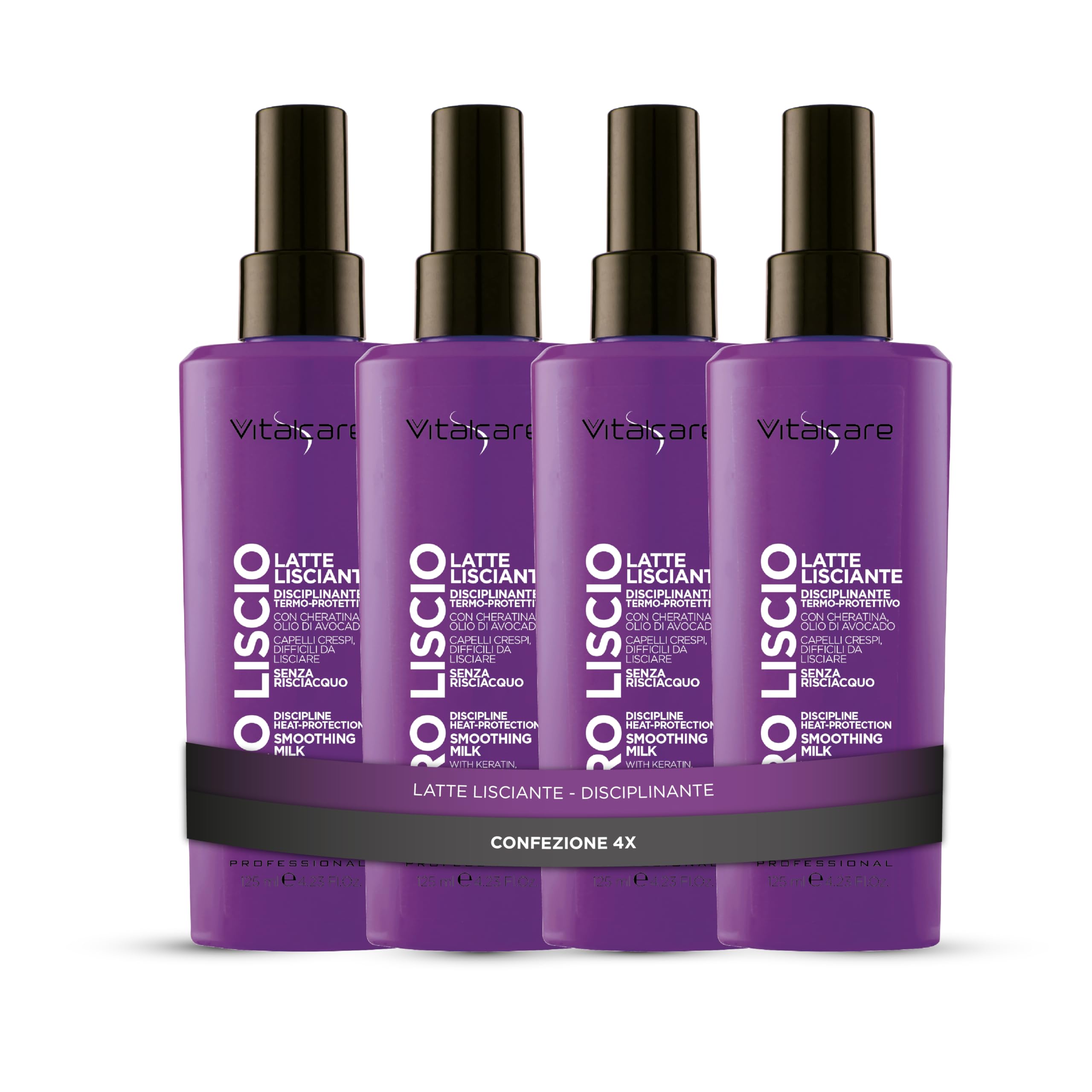 Pro Smoothing Disciplining Milk, with keratin and avocado oil, relaxes and smooths hair for effective frizz control, protecting it from the heat of blow dryers and straighteners. Multipack: 4 x 125ml sprays. INGREDIENTS Aqua (Water) (Linum Usitatissimum (Linseed) Seed Oil), Oenothera Biennis Oil (Oenothera Biennis (Evening Primerose) Oil), Crambes Abyssinica Seed Oil, Hydrolyzed Keratin, Panthenol, Polyquaternium 7, Ceteareth-7, Ceteareth-25, Benzyl Alcohol, Dehydroacetic Acid, Parfum (Fragrance), Linalool, Geraniol, Limonene, Citronellol, Hexyl Cinnamal, Benzyl Salicylate, Citral. SAFETY WARNING n.a. See moreVITALCARE: Vitalcare is all about hair beauty and health: shampoo, conditioner, masks, and specific products and treatments that meet every need with the quality and professionalism of a hairdresser and the convenience of a daily at-home routine. Directions for use: Apply 1 or 2 pearls of milk to the ends and lengths of washed and towel-dried hair. Do not rinse. Main ingredients: Among the main ingredients of the smoothing hair milk are keratin and avocado oil. Properties: Its formula contains keratin and avocado oil, which help relax and smooth hair for effective anti-frizz action, protecting it from the heat of blow dryers and straighteners. Smoothing milk: The Pro Smoothing Milk relaxes and smooths hair for effective anti-frizz action, protecting it from the heat of blow dryers and straighteners.Vitalcare PRO Lisse - Lait Lissant, Protection contre la Chaleur de Phon et Plaque, Action Anti-frisottis, Kératine et Huile d'Avocat, 4 Vaporisateurs de 125 mlDESCRIPTION DU PRODUIT DESCRIPTION DU PRODUIT Le lait lissant disciplinant Pro lisse, avec kératine et huile d'avocat, détend et lisse les cheveux pour une action efficace anti-frisottis, en les protégeant de la chaleur du sèche-cheveux et de la plaque. Multipack : 4 sprays de 125 ml. INGRÉDIENTS Aqua (Water), Myristyl Alcohol, Isopropyl Myristate, Bis-Cetearyl Amodimethicone, Cetrimonium Chloride, Persea Gratissima Oil (Persea Gratissima (Oil), Simmondsia Chinensis Seed Oil (Simmondsia Chinensis (Jojoba) Seed Oil), Triticum Vull Germ Oil (Triticum Vulgare (Wheat) Germ Oil), Linum Usitatissimum Seed Oil (Linum Usitatissimum (Linseed) Seed Oil), Oenothera Biennis Oil (Oenothera Biennis (Evening Primerose) Oil), Crambes Abyssinica Seed Oil, Hydrolyzed Keratin, Panthenol, Polyquaternium 7, Ceteareth-7, Ceteareth-25, Benzyl Alcohol, Dehydroacetic Acid, Parfum (Fragrance), Linalool, Géraniol, Limonène, Citronellol, Hexyl Cinnamal, Benzyl Salicylate, Citral. AVERTISSEMENT DE SÉCURITÉ n.a. Voir plusVITALCARE: Vitalcare est la beauté et la santé des cheveux : shampooing, après-shampooing, masques, produits et traitements spécifiques qui répondent à tous les besoins avec la qualité et le professionnalisme du coiffeur et le confort de la routine quotidienne de la maison. Mode d'emploi : appliquer 1 ou 2 perles de lait sur les pointes et les longueurs des cheveux lavés et tamponnés. Ne pas rincer. Ingrédients principaux : Parmi les ingrédients principaux du lait lissant pour cheveux, on trouve la kératine et l'huile d'avocat. Propriétés : Sa formule contient de la kératine et de l'huile d'avocat, qui aident à détendre et lisser les cheveux pour une action efficace anti-frisottis, en les protégeant de la chaleur du sèche-cheveux et de la plaque. Lait disciplant : le lait lissant Pro lisse détend et lisse les cheveux pour une action efficace anti-frisottis, en les protégeant de la chaleur du sèche-cheveux et de la plaque.