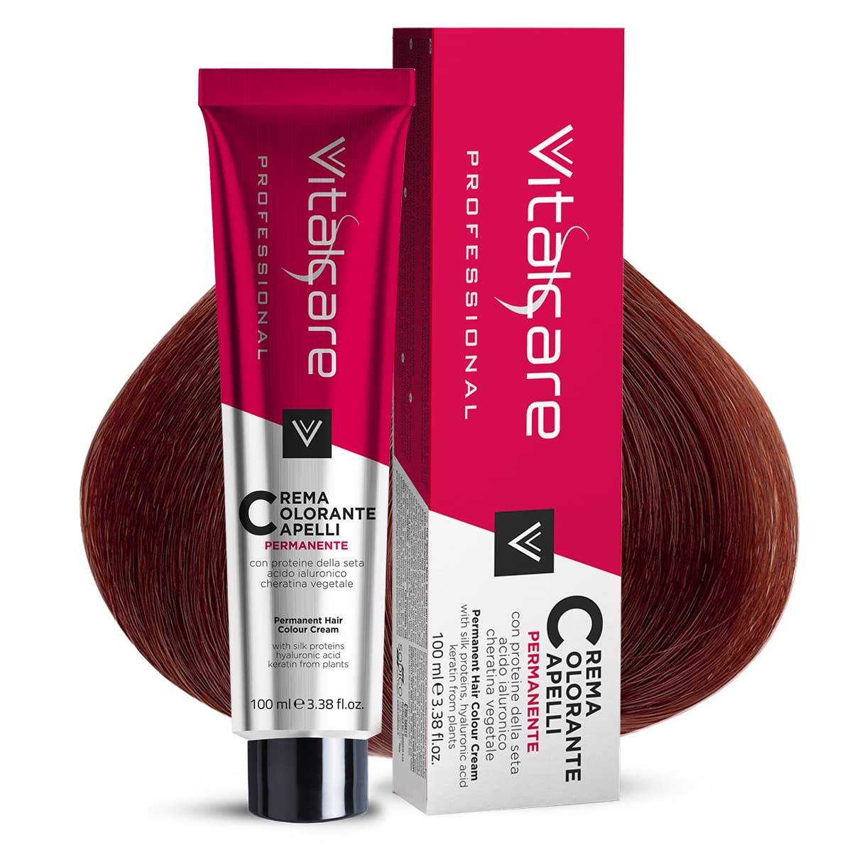 The Vitalcare professional hair color line consists of colors and accessories that guarantee professional results, all from the comfort of your own home. The result will be intense, natural-looking, long-lasting color with maximum gray coverage.VITALCARE Professional Color: This professional hair color line is a complete range of colors and accessories, designed to bring the salon experience home. With its colors and accessories, you can achieve stunning results independently and with the convenience of doing it whenever and however you like. Formula: The shade, formulated with next-generation pigments designed to guarantee even and long-lasting color from roots to tips, is enriched with silk proteins, which help protect and leave hair soft and shiny. PERMANENT: The result is permanent our products are suitable for both gray coverage and radical color changes. Our products make it easy to achieve precise results and long-lasting color. PROFESSIONAL: Vitalcare shades guarantee professional results, allowing you to do it independently and with the convenience of doing it whenever and however you like. The result will be intense, natural-looking, long-lasting color with maximum gray coverage. Features: Vitalcare Professional colouring cream offers a professional and permanent result to obtain precise results and 100 grey hair coverage with extreme simplicity.Vitalcare Professional - Coloration Permanente Professionnelle, Crème Colorante Cheveux, Teinture Cheveux avec Protéines de Soie, n 5 6, Rouge Feu, 100mlDESCRIPTION DU PRODUIT La ligne de coloration professionnelle de Vitalcare est composée de couleurs et d'accessoires qui garantissent des résultats professionnels en toute autonomie, confortablement dans votre maison. Le résultat sera une couleur intense et naturelle, de longue durée et une couverture maximale des cheveux blancs.VITALCARE Couleur professionnelle : la ligne de coloration professionnelle est une ligne complète de couleurs et d'accessoires, conçue pour amener le coiffeur à votre maison. Grâce à ses couleurs et ses accessoires, vous pourrez obtenir un résultat étonnant en toute autonomie et avec la commodité de pouvoir le faire quand et comme vous le souhaitez. Formule : la teinte, formulée avec des pigments de dernière génération, étudiés pour garantir une couleur uniforme et durable des racines aux pointes, est enrichie en protéines de soie, qui aident à protéger et rendre les cheveux doux et lumineux. PERMANENT : le résultat obtenu est permanent, nos produits sont adaptés aussi bien dans les cas de couverture des cheveux gris que les changements radicaux de couleur. Nos produits permettent d'obtenir facilement des résultats précis et des couleurs durables. PROFESSIONNALITÉ : les couleurs des teintes Vitalcare garantissent un résultat professionnel, en pleine autonomie et avec la commodité de pouvoir le faire quand et comme vous le souhaitez. Le résultat sera une couleur intense et naturelle, longue durée, et la couverture maximale des cheveux blancs. Caractéristiques : la crème colorante Vitalcare Professional offre un résultat professionnel et permanent pour obtenir avec une extrême simplicité des résultats précis et 100 de couverture des cheveux blancs.