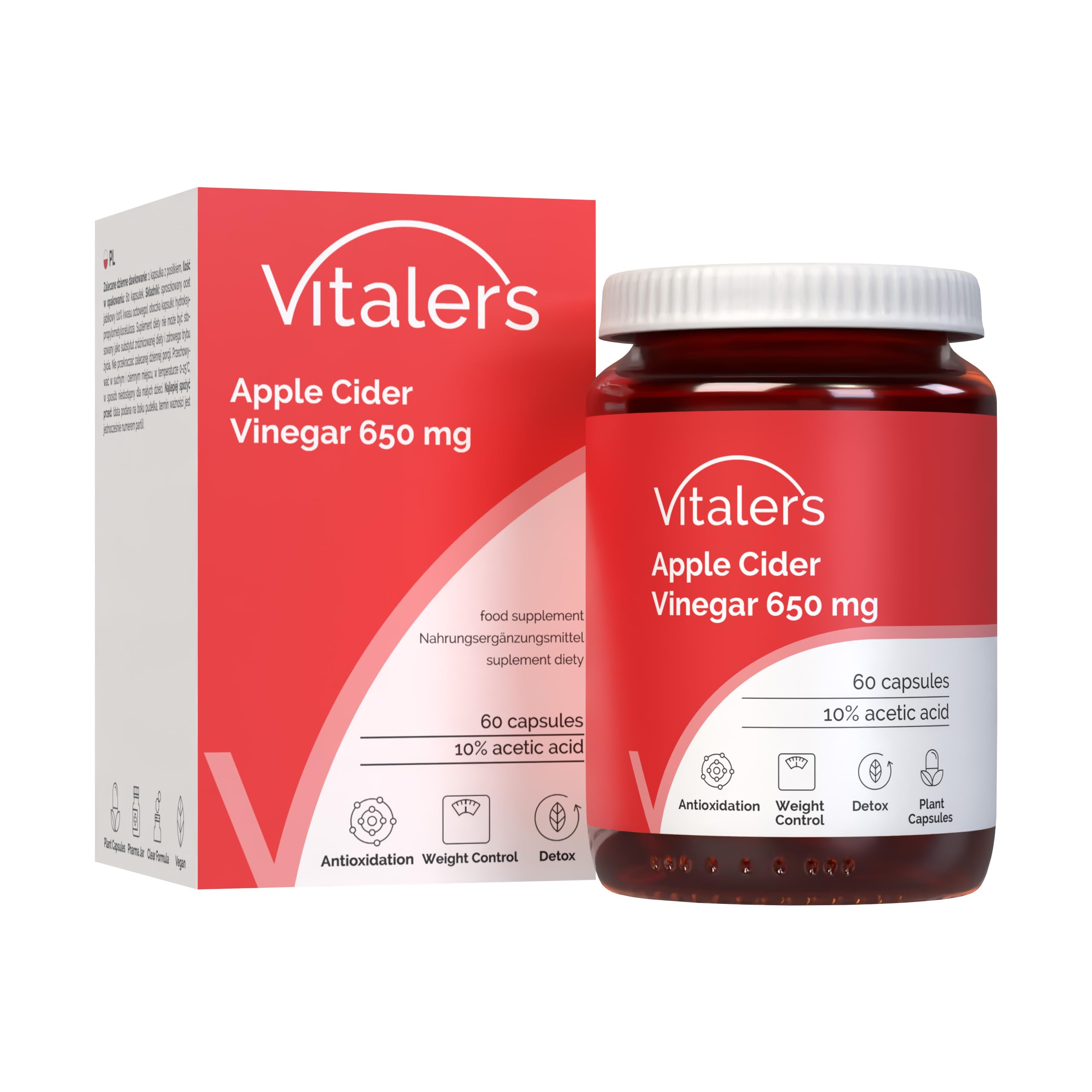 Vitaler's Vinaigre de Cidre 650 mg – 60 gélules, Cure 2 Mois, Vegan, Sans Conservateurs, Composition Pure