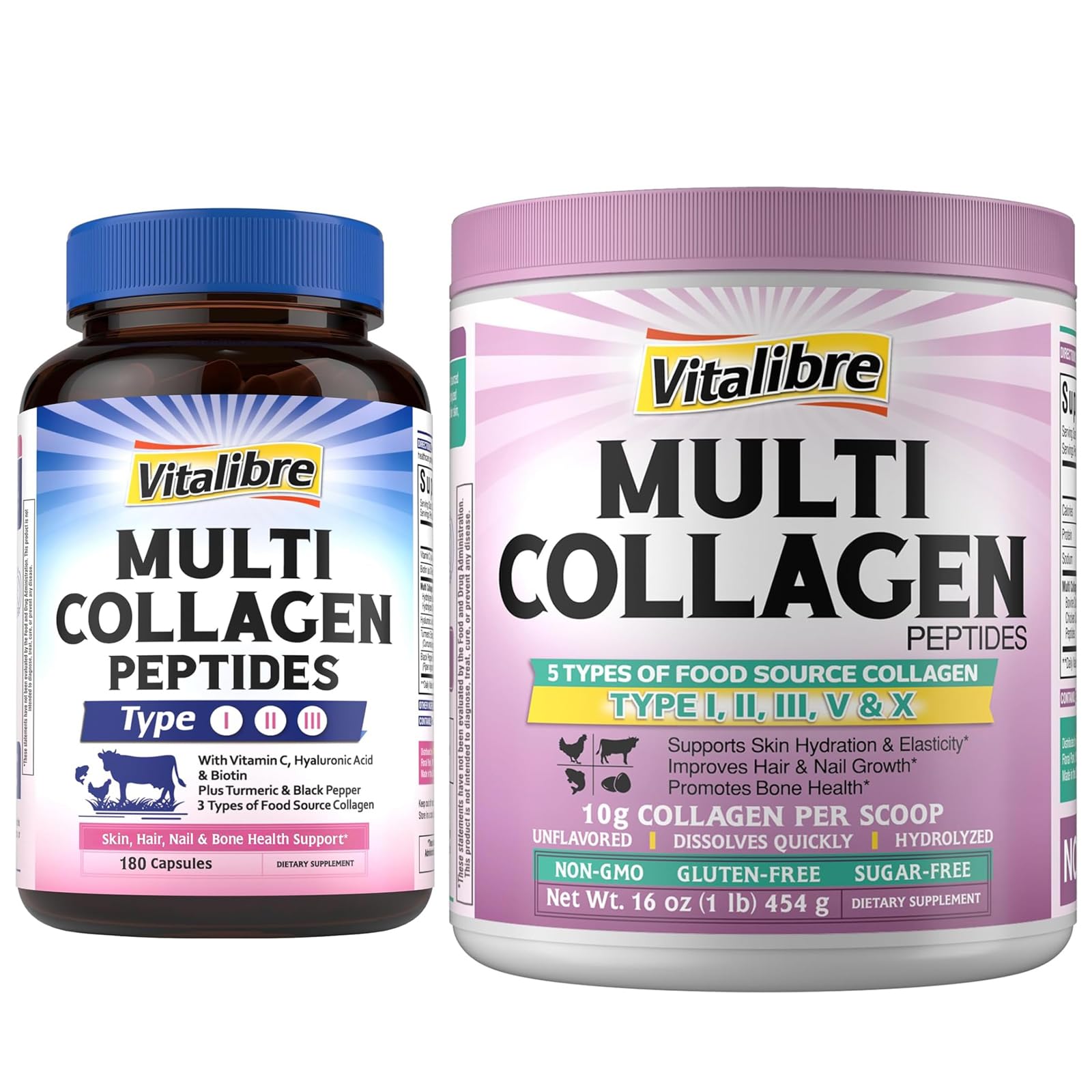 Vitalibre Multi Collagen Peptides 180 Caps and Multi Collagen Peptides Powder 16oz